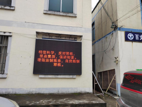 利用户外电子宣传屏,循环滚动播出反邪教宣传标语