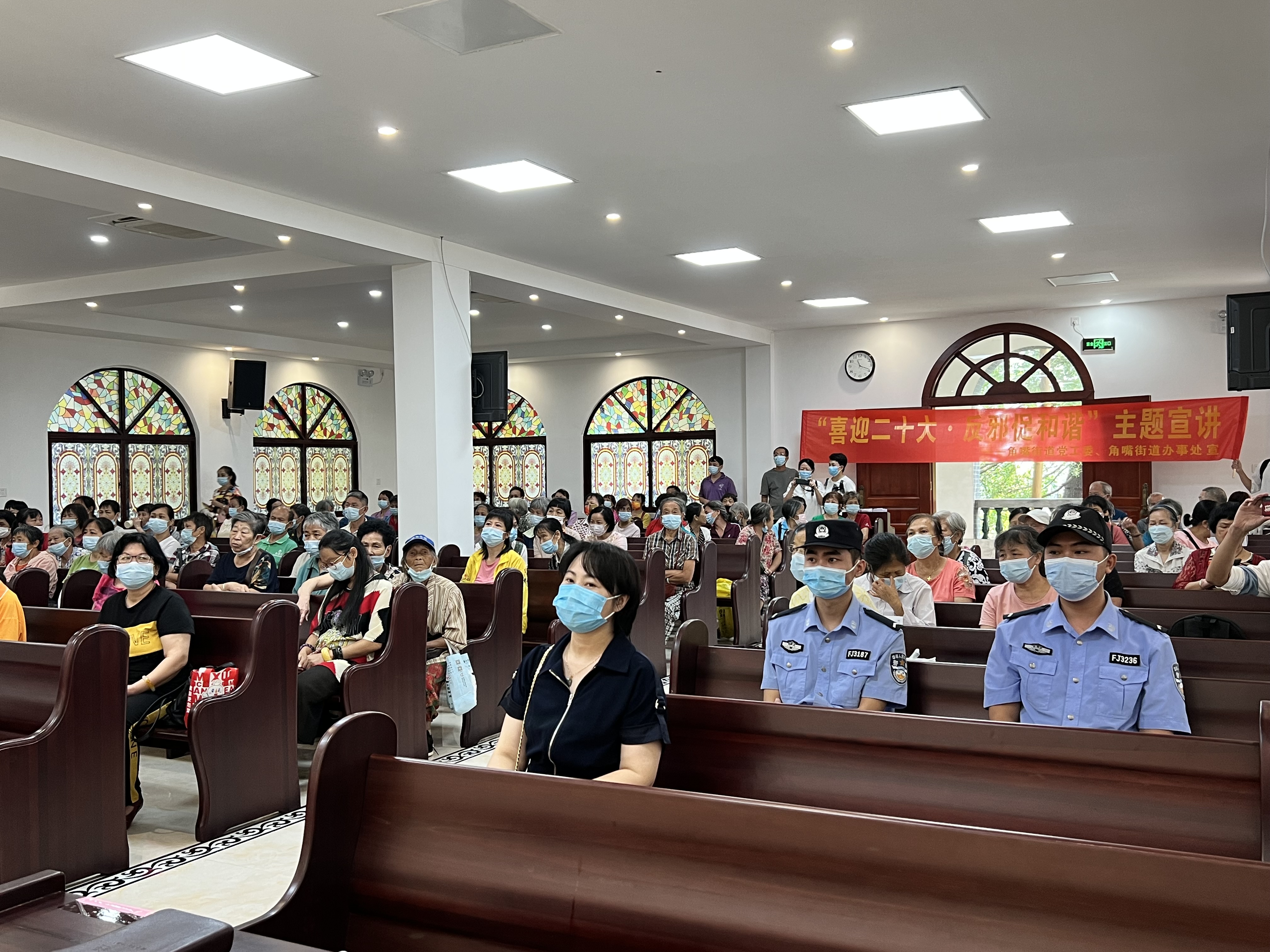 广西反邪教网梧州10月8日讯(通讯员 叶婷)为进一步深化反邪教警示宣传教育工作,让信教群众进一步认清邪教组织的本质与危害,增强信教群众的反邪意识,9月25日,广西壮族自治区梧州市万秀区在梧州市基督教堂举办“喜迎二十大·反邪促和谐”主题警示教育宣讲活动,全力构建文明和谐的社会环境,营造浓厚的反邪教氛围。