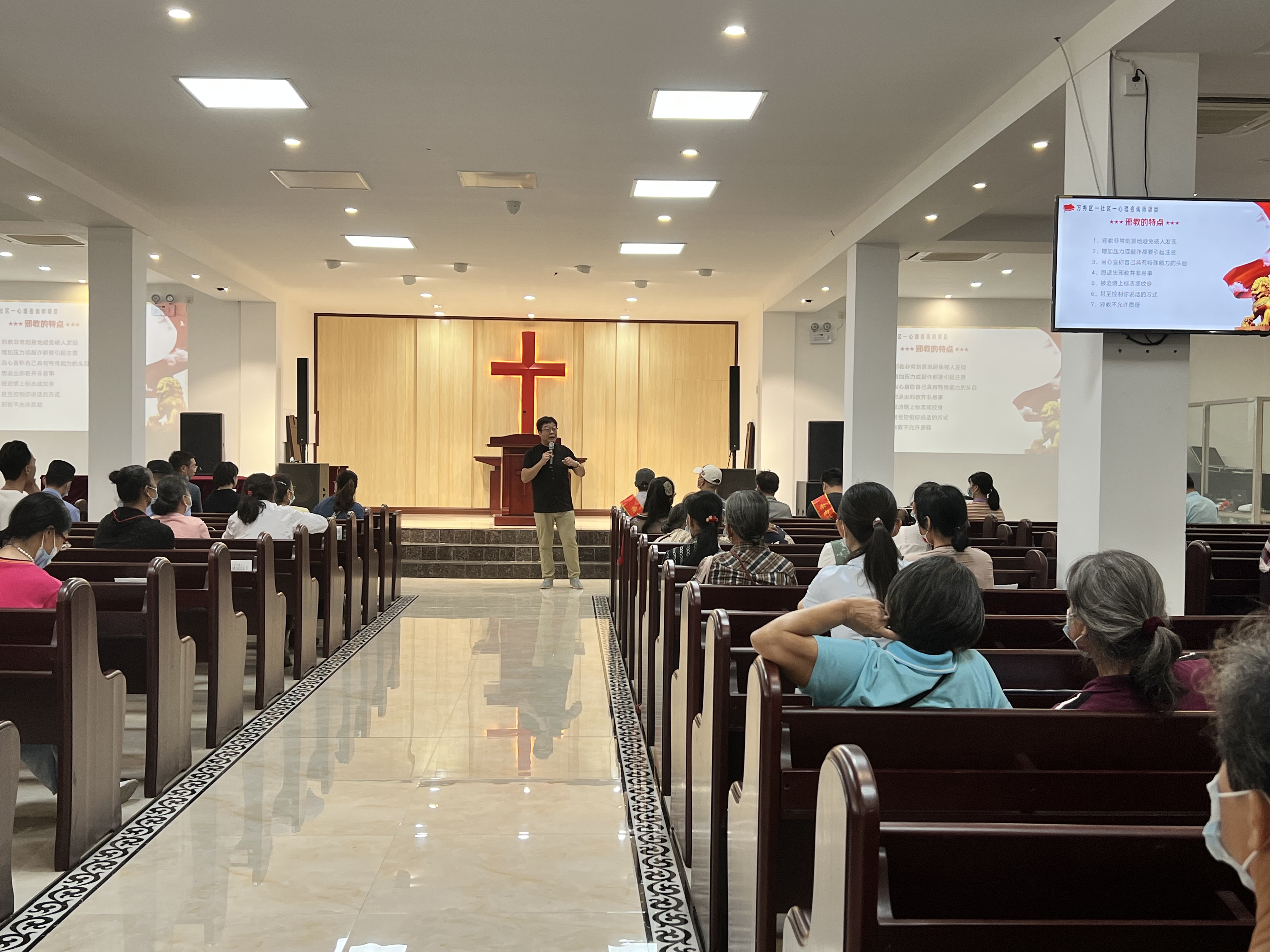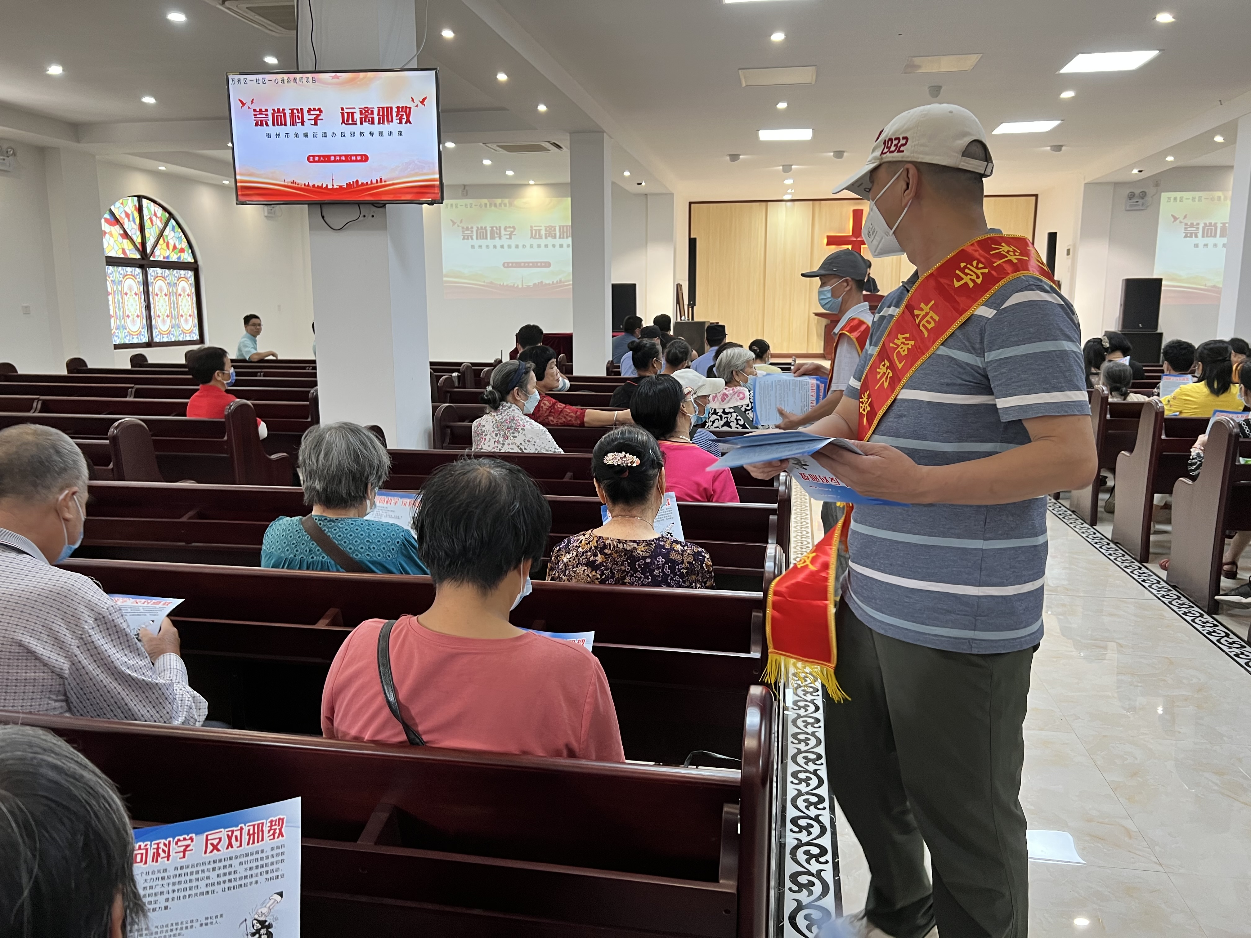 梧州市万秀区针对宗教场所作为邪教“易感场所”之一,邀请心理咨询师为信众宣讲,提高信众对邪教的“抵抗力”