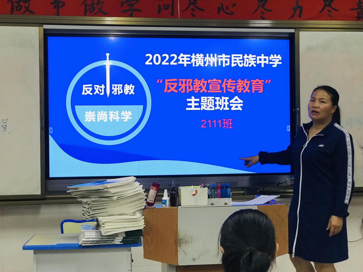 广西反邪教网10月8日南宁讯(通讯员 覃洪镶)为引导和教育广大师生进一步认清邪教组织本质,防范各种形式邪教的毒害,保护身心健康,创造良好的工作和学习环境,广西壮族自治区横州市民族中学以开学为契机,于9月5日-9日开展了2022年秋季学期反邪教警示教育宣传周系列活动。