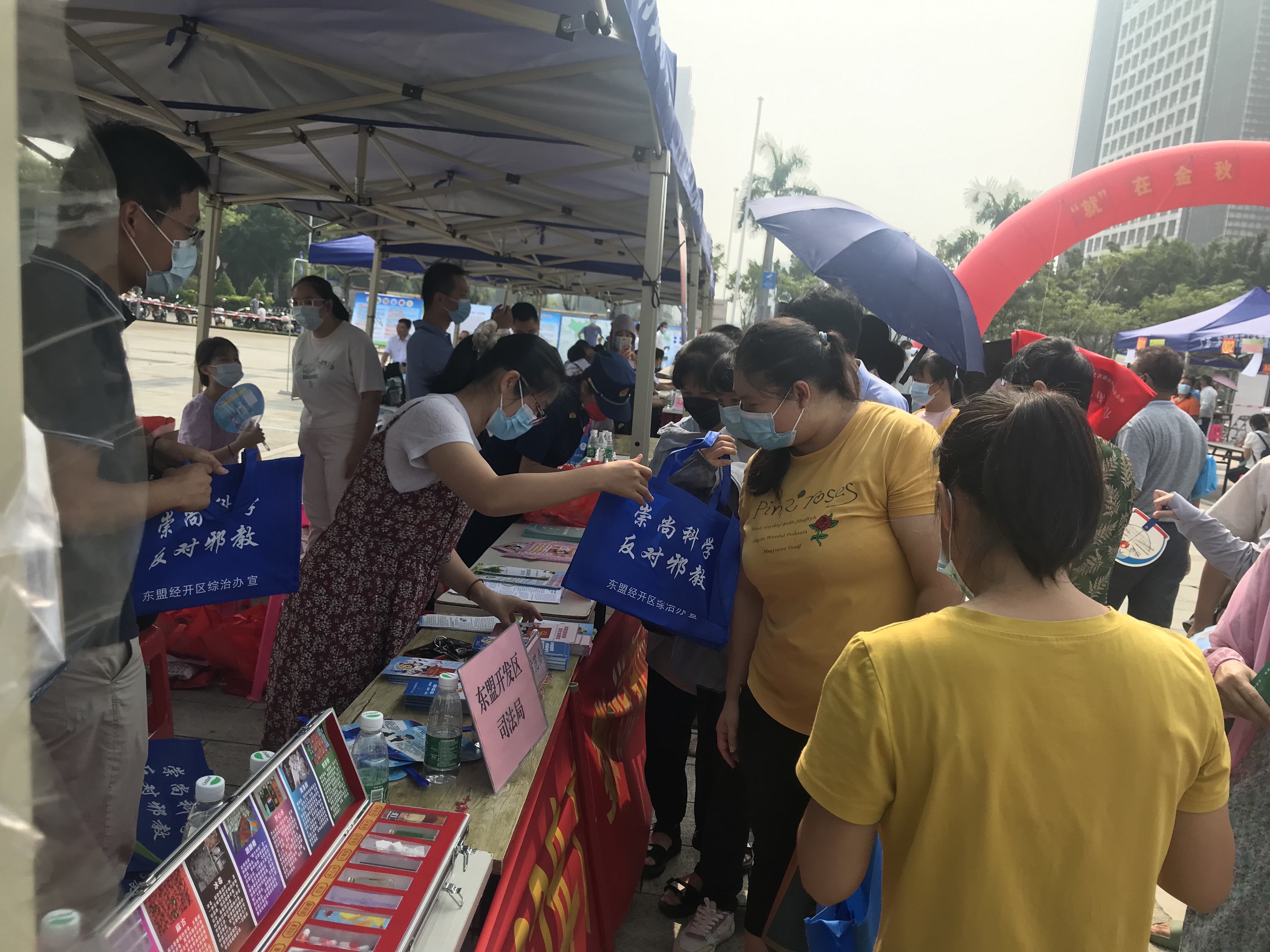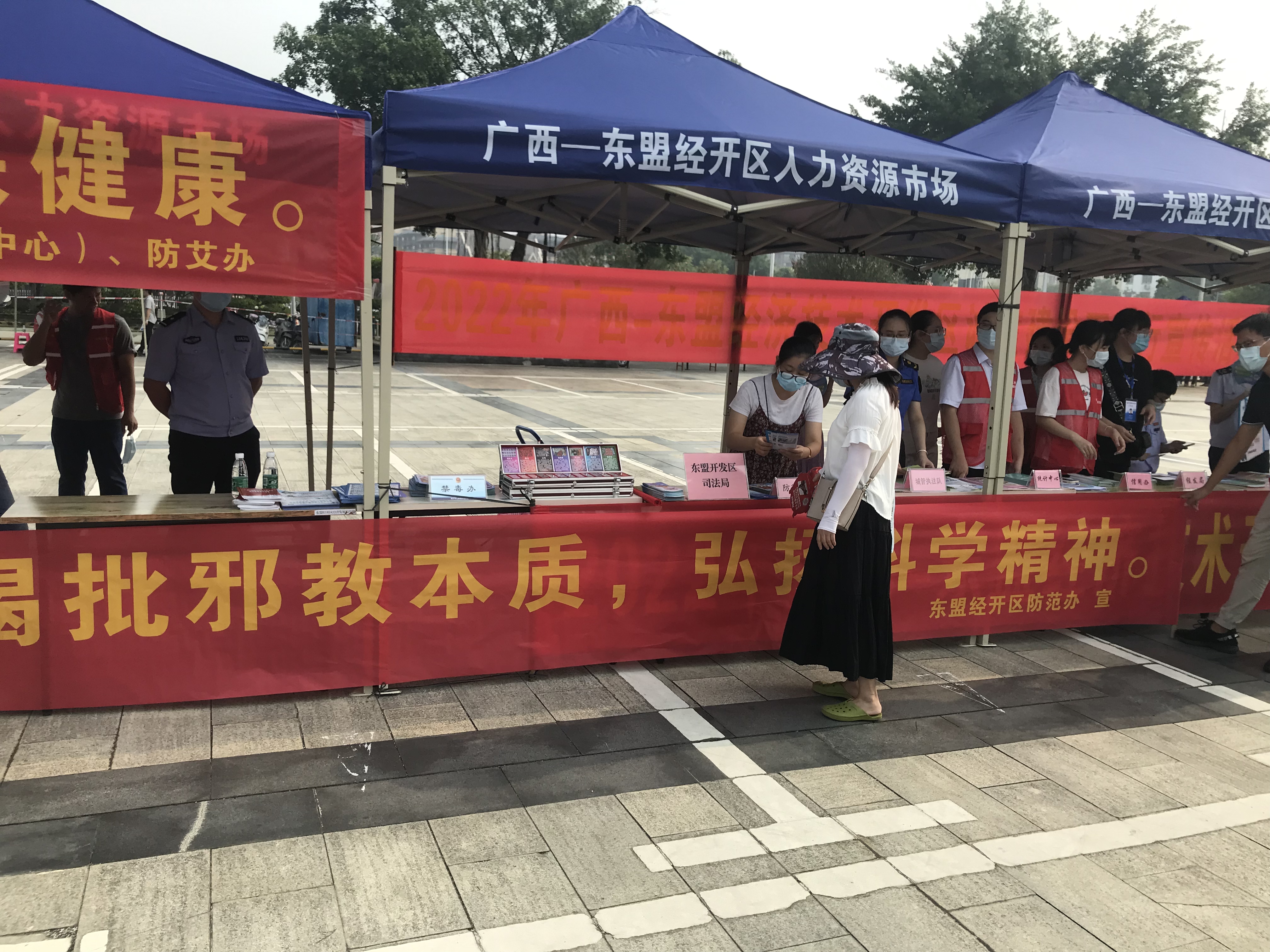 广西反邪教网南宁10月8日讯(通讯员 李鹏豪)为进一步深化反邪教工作,增强群众识邪、辨邪、防邪、拒邪的意识,构建和谐平安社会,9月21日,广西南宁市东盟经开区社管局结合“2022年金秋招聘月活动”,在招聘现场——小帽山广场开展反邪教宣传活动。