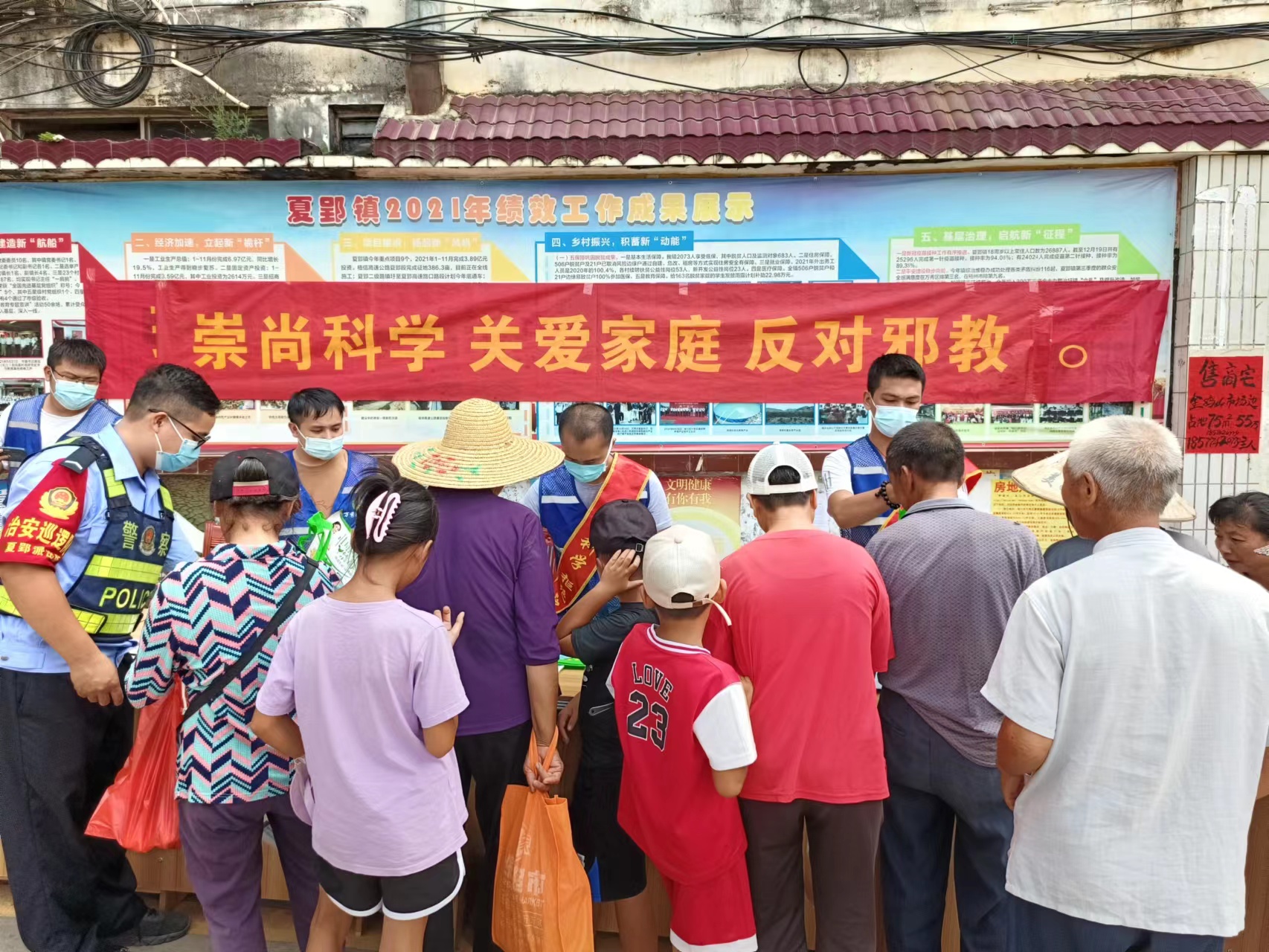反邪宣传进圩镇,群众反邪“齐践行”。夏郢镇趁着“一、四、七”圩日,开展反邪教宣传活动。通过悬挂横幅、发放宣传资料、环保袋,张贴宣传海报,现场讲解的形式进行宣传教育。群众们踊跃参与活动,进一步加深夏郢镇群众对邪教罪恶本质的认识,加强自觉抵制邪教侵蚀意识,营造人人参与反邪教社会氛围。