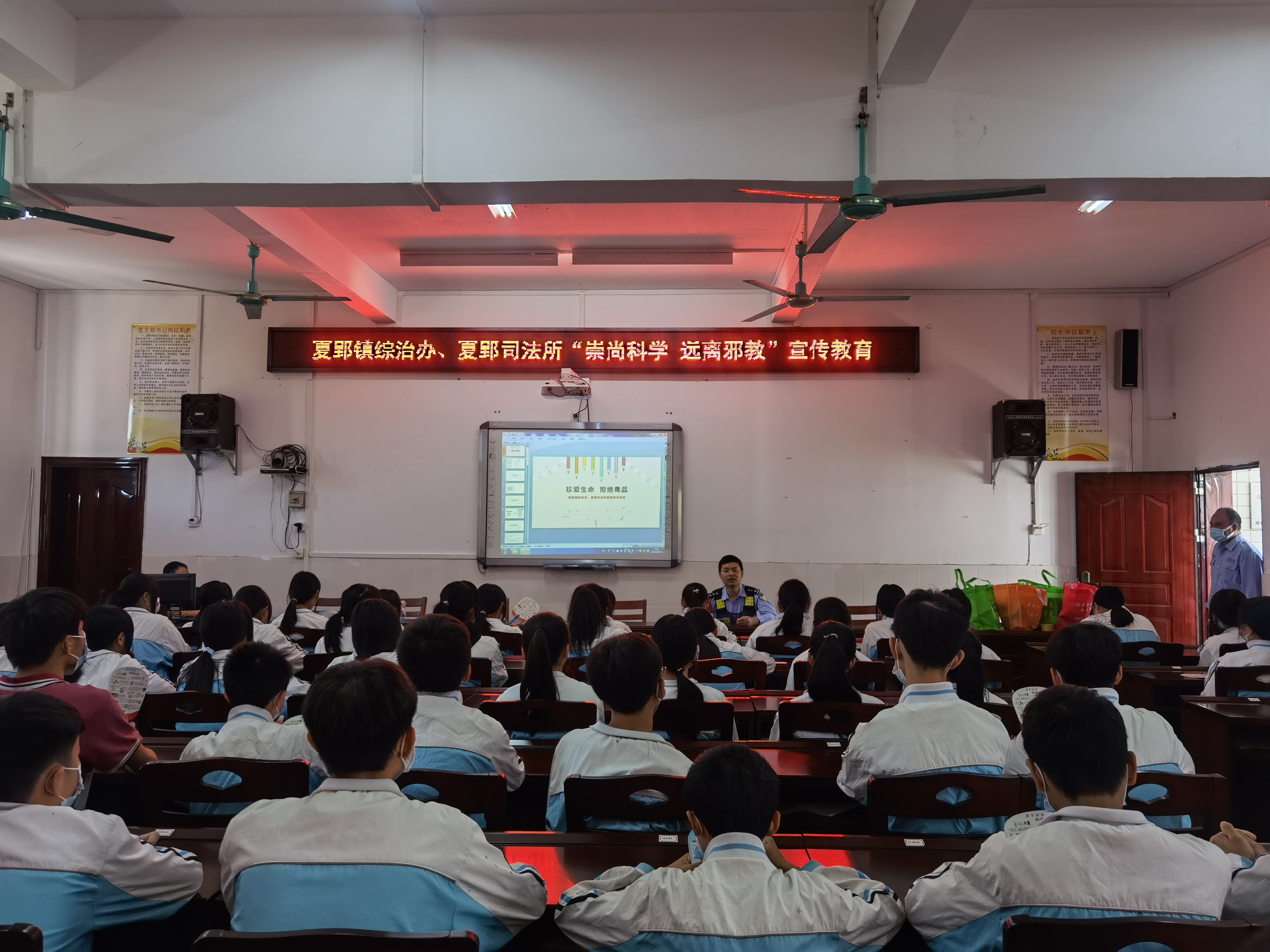 反邪宣传进校园,无邪青春“伴我行”。青少年是祖国的未来,民族的希望。为进一步抓好青少年反邪教警示教育,增强青少年学生识邪、拒邪意识和能力,护航祖国未来的成长,10月13日,夏郢镇反邪志愿者紧扣爱国主义教育,深入辖区学校开展“筑牢反邪防线,喜迎党的二十大”为主题反邪宣传教育课。课堂上,志愿者利用视频短片形式给学生们展示邪教给人带来严重危害,以图文结合,生动有趣的现场讲解、真实案例的说法教育、有奖互动问答形式,教会了学生如何识别邪教、如何防范邪教、如何抵制邪教。同时鼓励学生们争做“反邪教先锋”,做到“远离邪教、抵制邪教从我做起,从小做起”,切实筑牢防邪反邪“防火墙”,构建平安和谐校园。