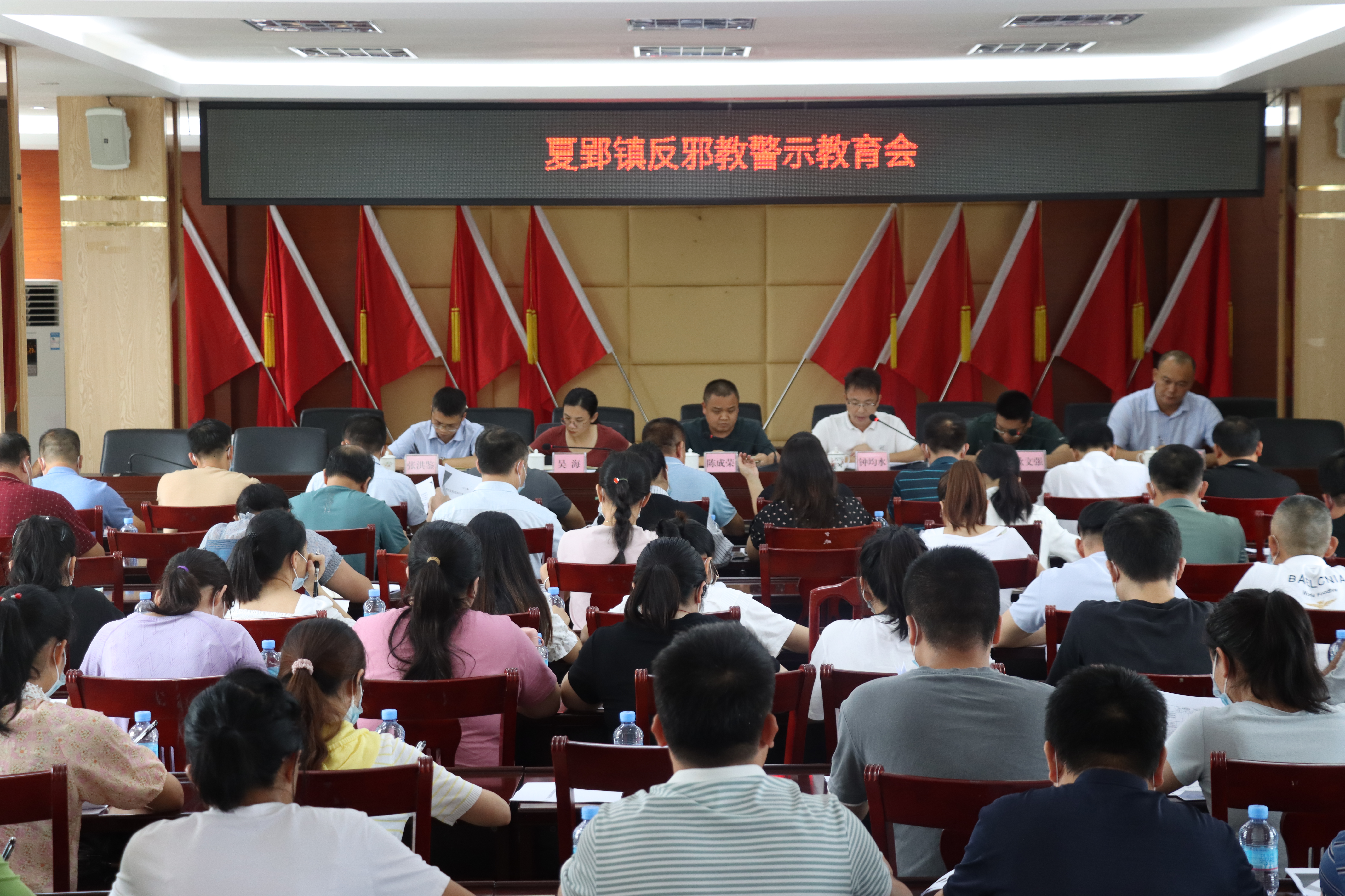 反邪宣传进单位,党员反邪“我先行”。“作为党员干部首先要身先士卒、以身作则远离邪教、反对邪教”夏郢镇党委书记在反邪教警示教育会上给全体党员干部予以警示告诫。他要求党员干部们发挥“领头雁”作用,做到“四个带头”:带头学习防邪反邪相关知识;带头不听、不信、不传、不参加任何封建迷信活动;带头参加防邪反邪宣传教育活动;带头检举揭发邪教违法犯罪活动。