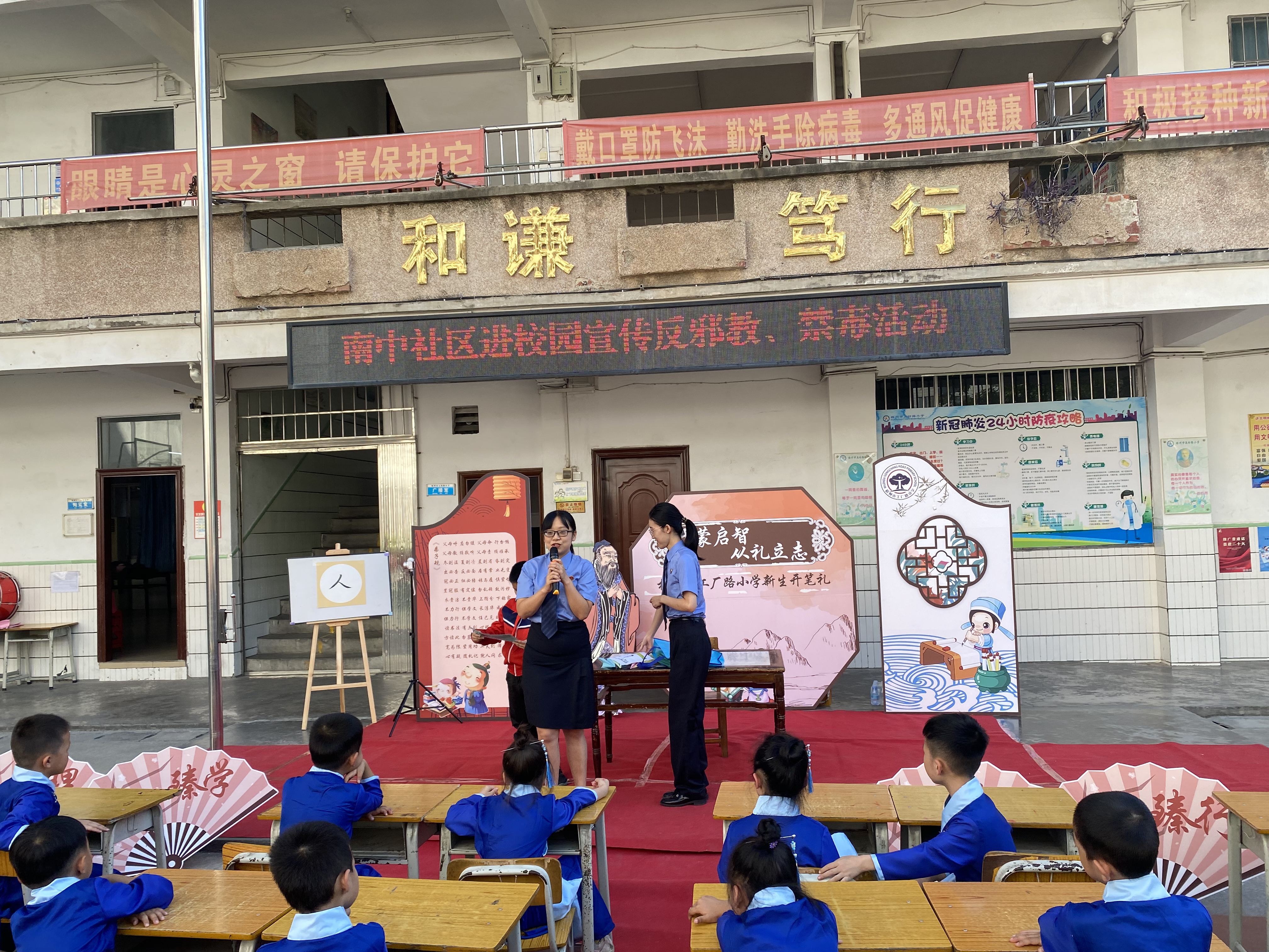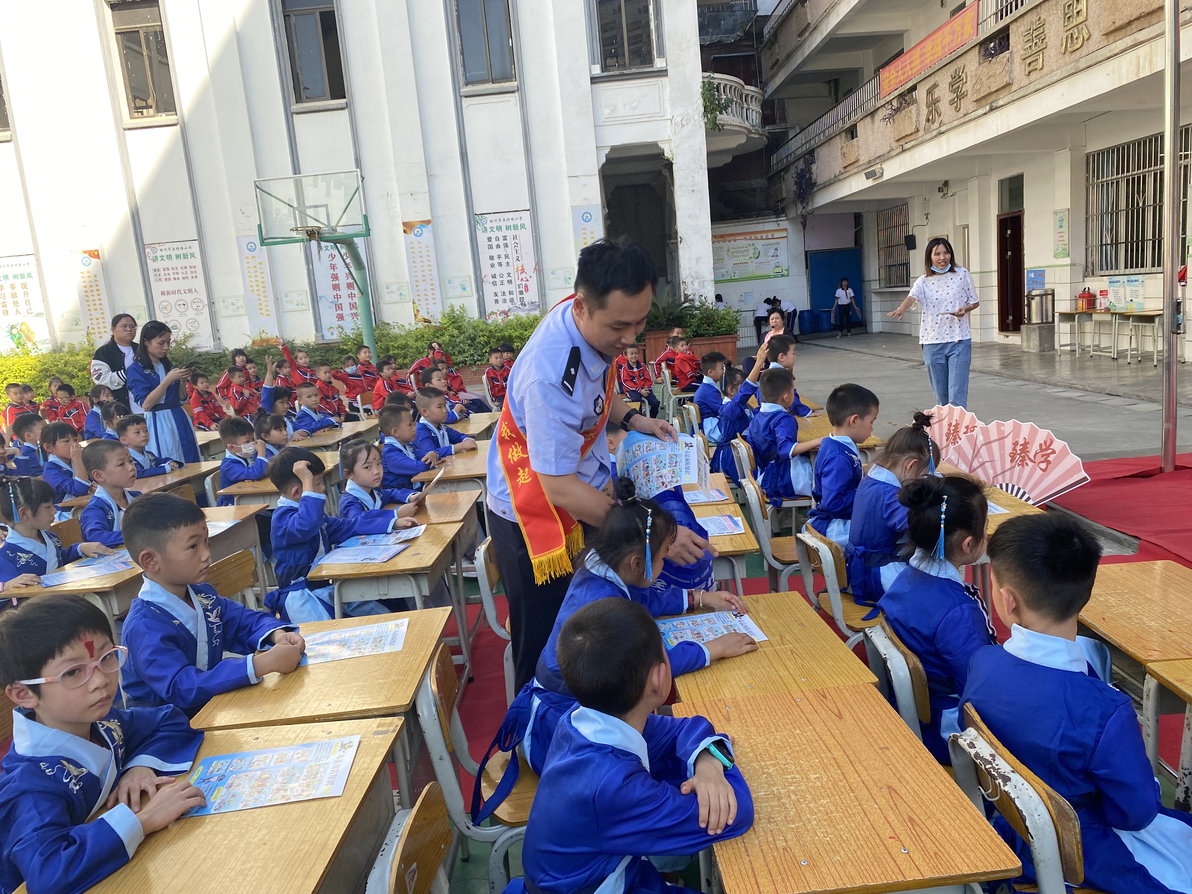广西反邪教网梧州10月19日讯(通讯员 叶凯乾 刘冬 叶婷)“开笔礼”是中国传统文化中对少儿开始识字习礼的一种启蒙教育形式,被称为人生四大礼之一。为帮助未成年人从小树立识邪防邪拒邪的意识和能力,加强反邪教宣传教育,2022年10月13日,广西壮族自治区梧州市万秀区城南街道、万秀区人民检察院、梧州市公安局红楼派出所(合署)共同走进梧州市五坊路小学,为200多名学生举行一场特别的反邪教“开笔礼”——反邪教知识讲座。