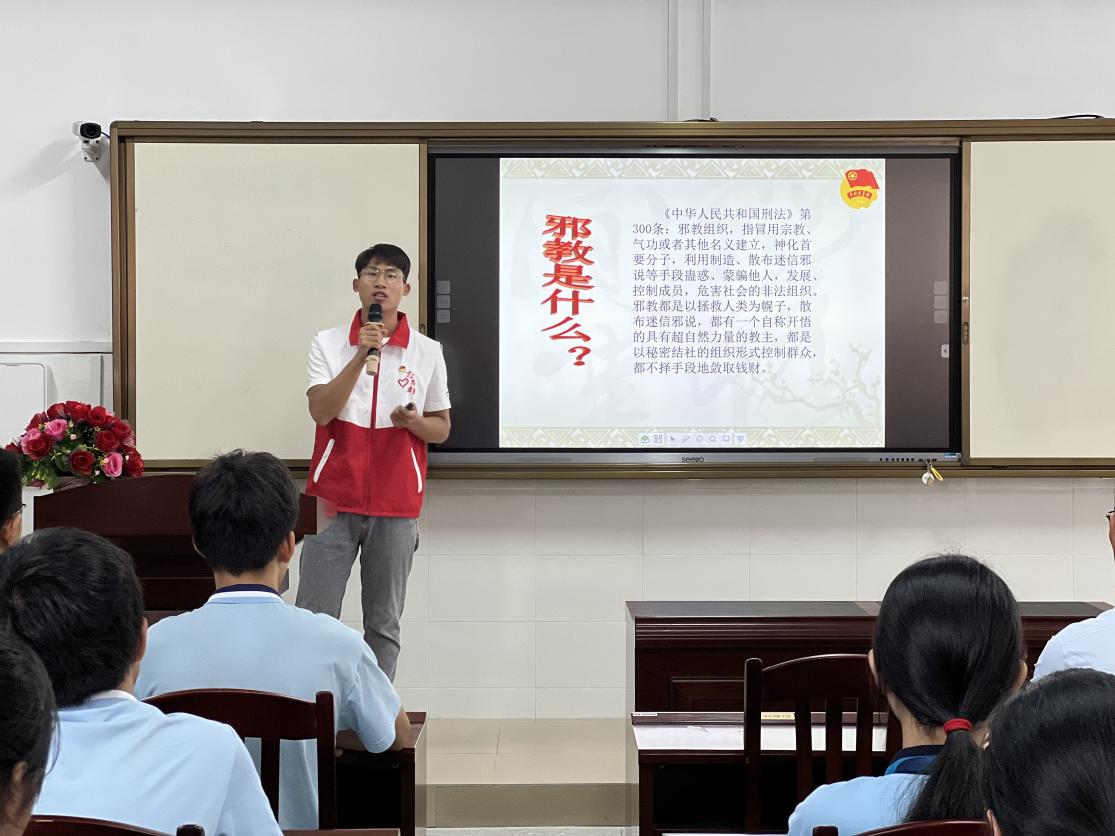 活动中,志愿者通过发放反邪教宣传资料和现场讲解等形式向融安县实验中学师生介绍了邪教的定义。通过具体的案例讲解,进一步阐述了邪教的危害性。并与师生进行互动问答,先抛出问题:我们已经知道了邪教的危害性,那我们应该如何抵御邪教呢?全体师生积极发表看法,志愿者针对大家的看法做总结归纳。向师生们进行总结:应提高自我防范能力,大力加强科学文化知识的学习,自觉抵御迷信、伪科学和反科学思想的侵袭,增强法制观念,做遵纪守法的好公民。同时学校也通过校园广播、多媒体视频、主题班会等形式大力宣扬科学思想,抨击各种邪教组织的罪恶行径,让师生认清了邪教的本质特点、骗人手段及危害,了解了防范和抵制邪教的方法。学校还利用班级微信群、QQ群等将宣传教育活动内容告知每位家长,使防邪知识走进每个家庭。