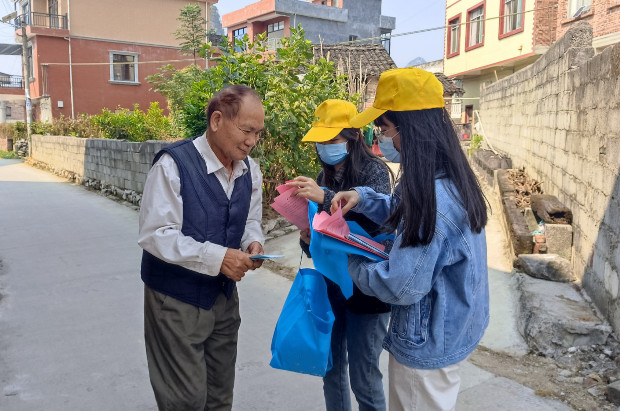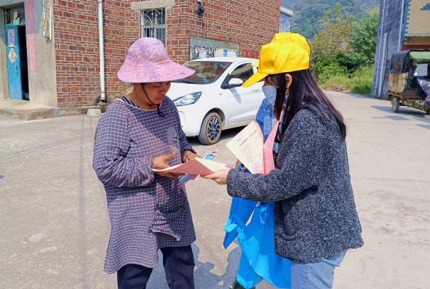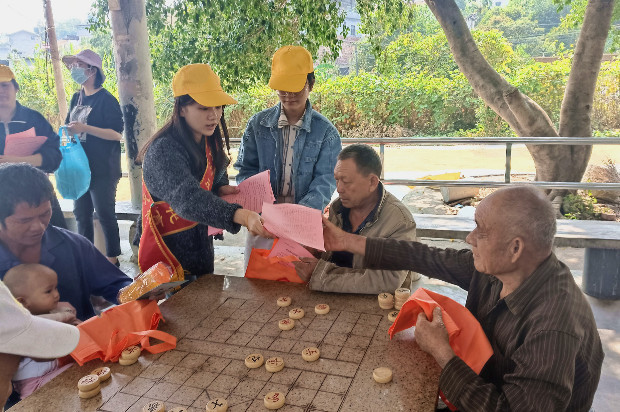 工作人员深入村屯向村民发放反邪教宣传资料并讲解相关知识