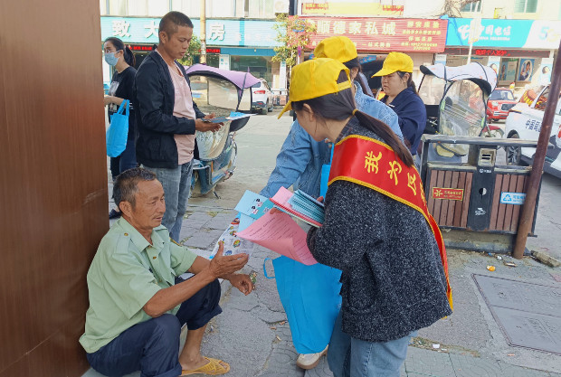 工作人员在德胜镇街道上设点开展反邪教宣传