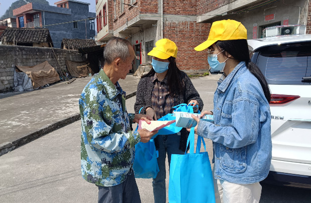 工作人员深入村屯向村民发放反邪教宣传资料