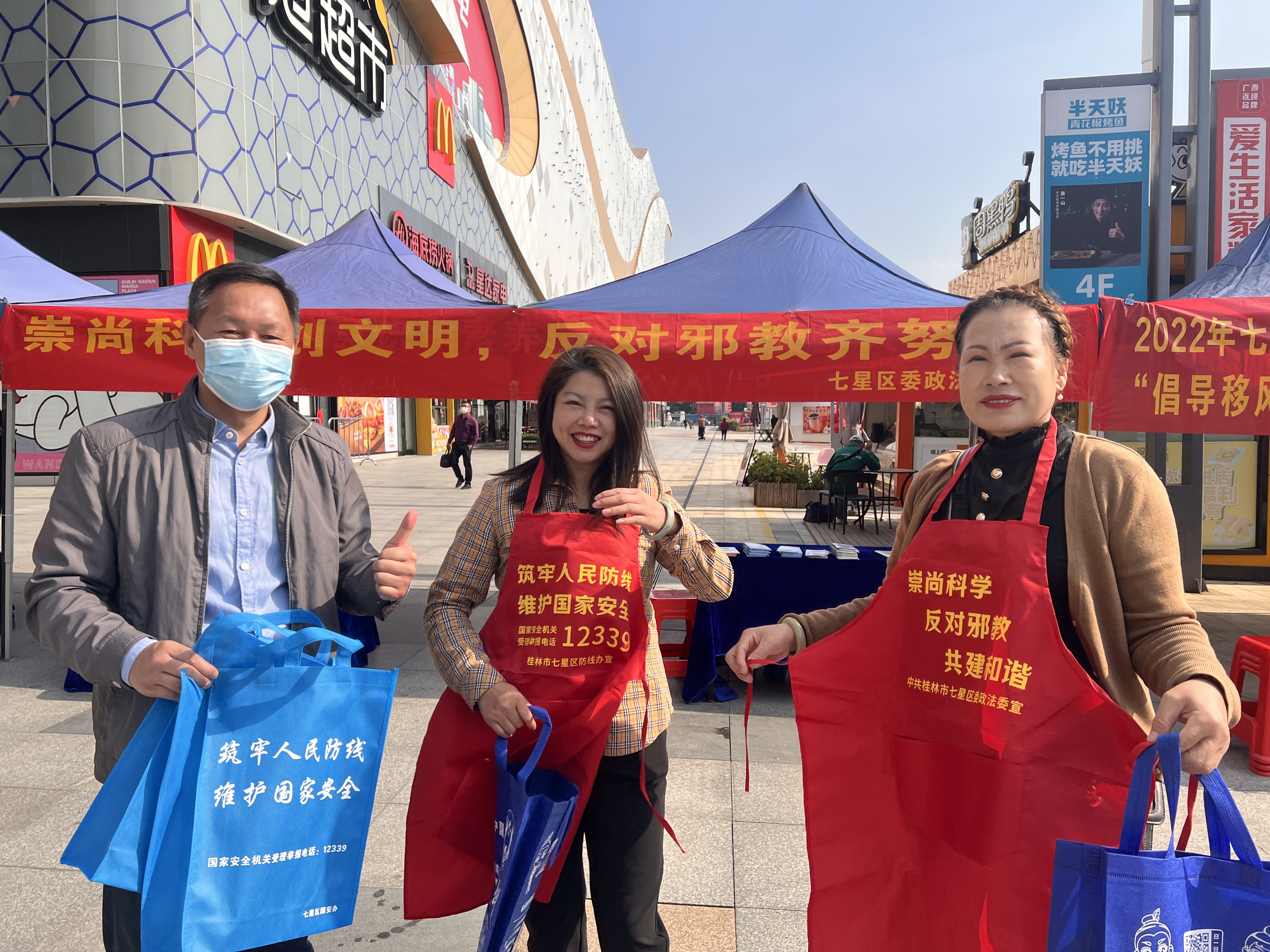 广西反邪教网桂林11月17日讯(通讯员 卫姗姗)11月1日上午,广西桂林市七星区委政法委组织区政法单位联合漓东街道办事处,在高新万达广场开展“11.1”《中华人民共和国反间谍法》颁布实施8周年纪念日活动,为增强人民群众识邪、辨邪、防邪、拒邪意识,普及反邪教知识,同步开展了反邪教宣传活动。