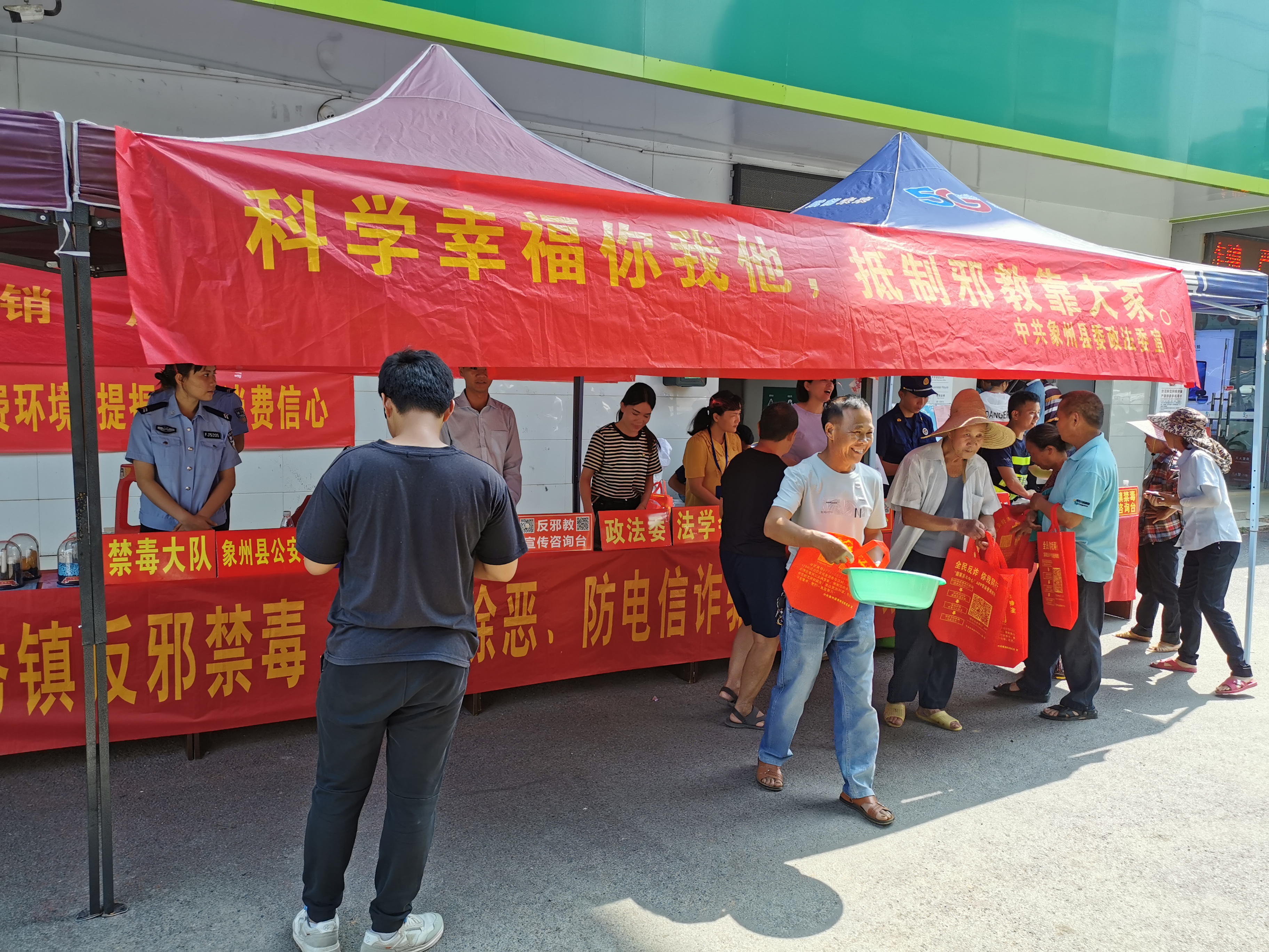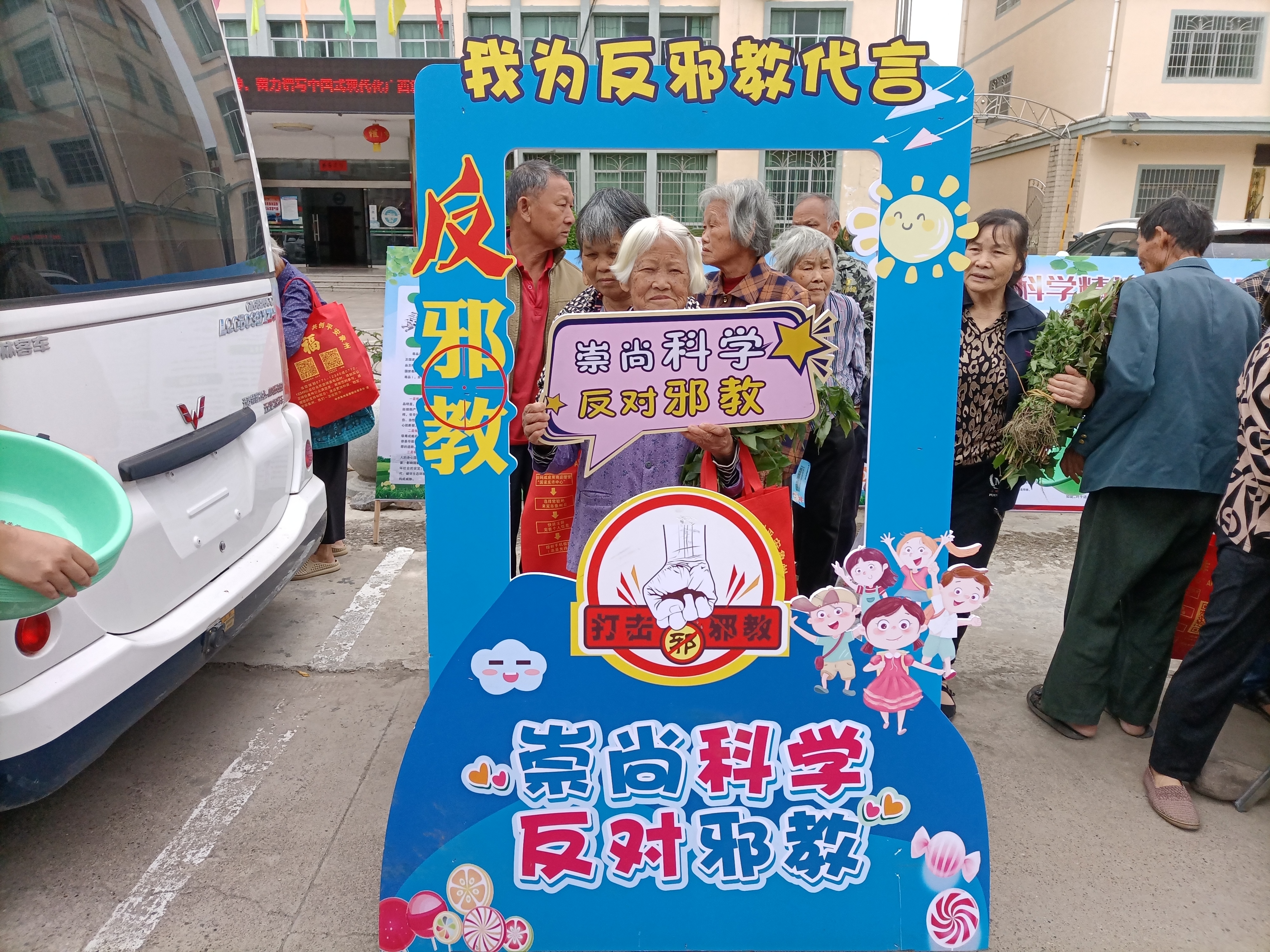 活动中,工作人员用通俗易懂的语言向群众普及讲解邪教的种类、基本特征、主要侵害对象、骗人手法以及如何防范邪教侵蚀等相关知识,并通过剖析真实案例,让广大群众认识到邪教给个人、家庭、社会带来的巨大伤害,教育群众要崇尚科学,对邪教言论做到不听、不信、不传,勇于检举揭发邪教的活动,带动更多的人远离邪教,拒绝邪教。现场还组织引导群众扫码关注“中国反邪教”“广西反邪”微信公众号,引导大家参与“对邪教说不”“广西文明家庭拒绝邪教”网络签名活动。同时,“平安大篷车”也同步在现场向群众播放“崇尚科学、反对邪教”反邪教宣传片。