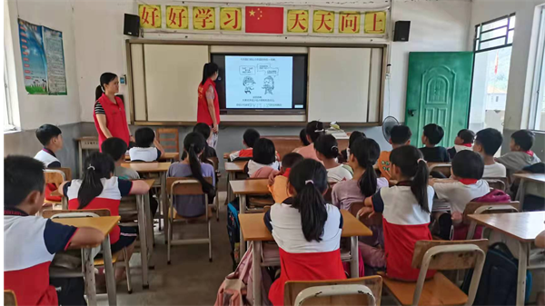 志愿者走进校园开展主题班会课,面对面给同学们授课讲解,结合课件以及短篇反邪动画对邪教的本质和特征进行分析,学习为什么要反对邪教,如何认清邪教等方面知识,同时宣传国家打击邪教的相关法律知识,鼓励师生积极参加反邪禁毒活动,增强学生们防范抵御邪教的意识和能力,当发现毒品和邪教人员及要时向公安机关检举揭发,维护社会稳定和健康发展。