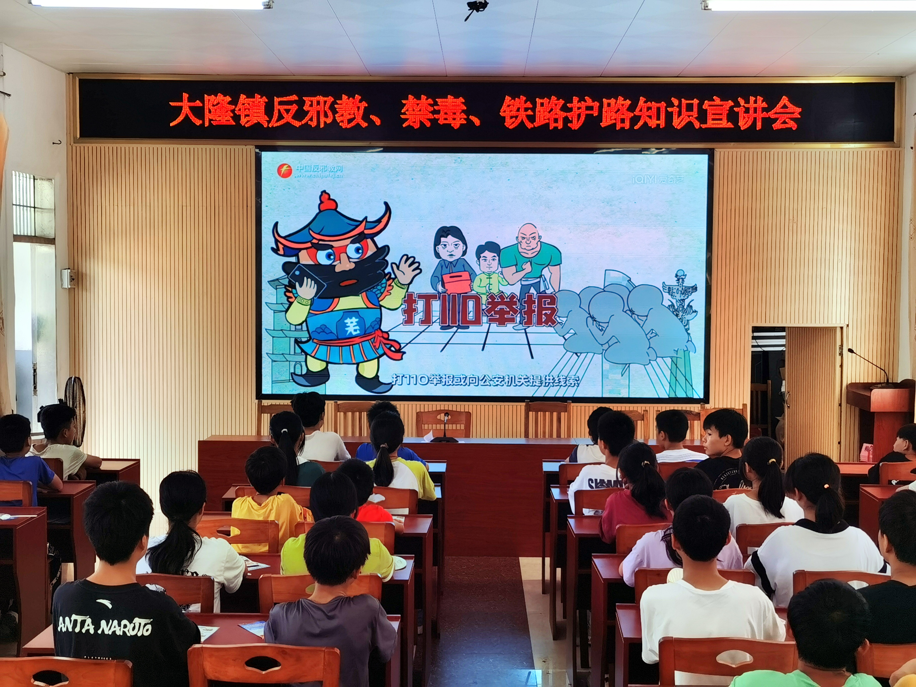 活动中,工作人员向学生们发放反邪教宣传资料以及小扇子,由大隆镇廖部长耐心地给小学生们解释什么是邪教、邪教与正确的宗教信仰有什么区别、邪教是如何危害自身安全等知识,并播放了《如何快速辨别邪教》《青少年如何抵御邪教诱骗》《小学生也要防邪教》等教育短片。同时,工作人员还向学生普及铁路护路、禁毒等安全知识,帮助青少年进一步认识毒品的危害,自觉遵守铁路规定。