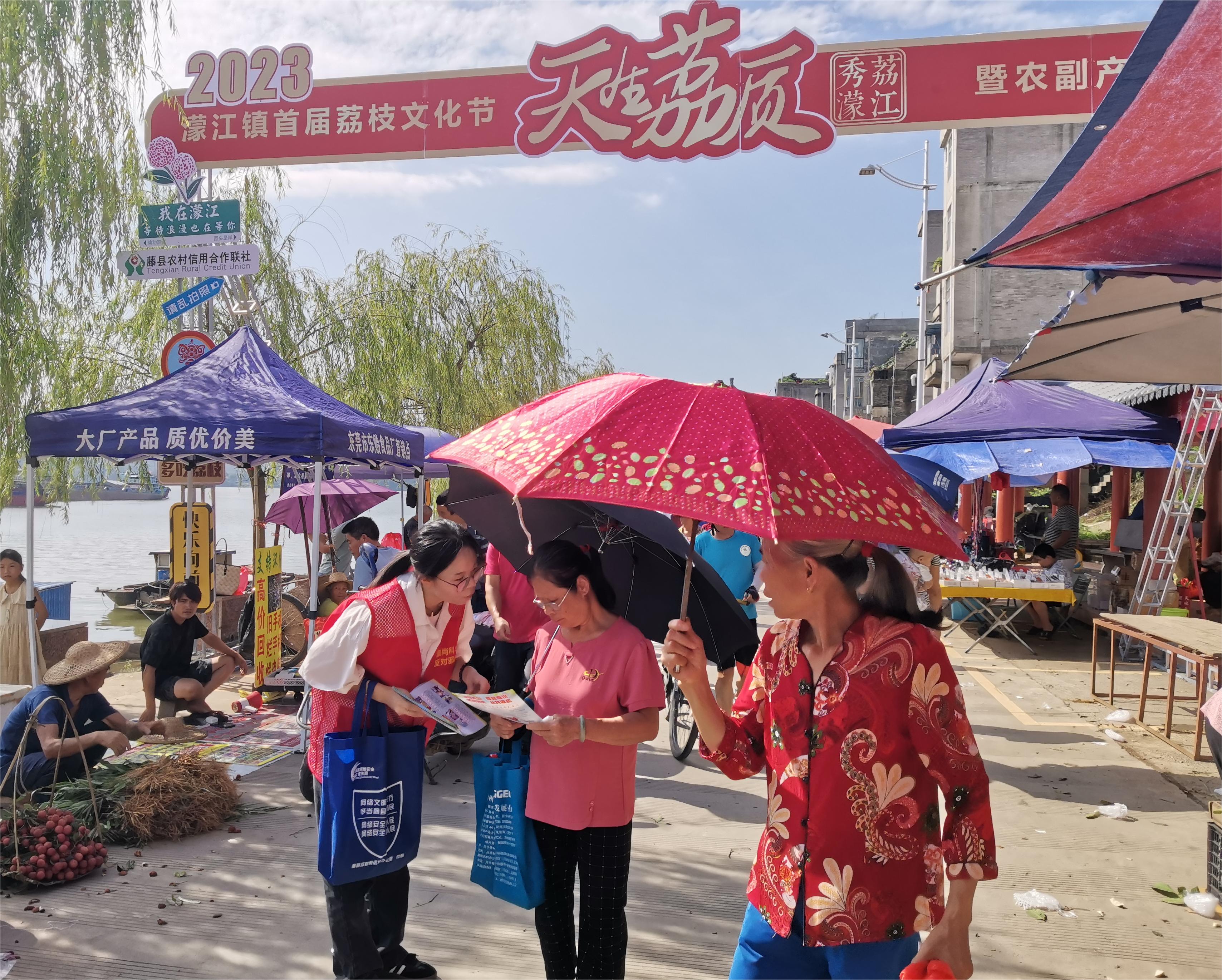 广西反邪教网梧州7月18日讯(通讯员 李东生 黄思瑜)为进一步提高群众识邪、防邪、拒邪、反邪意识,6月28日至7月4日,广西壮族自治区梧州市藤县以濛江镇“天生荔质·秀荔濛江”首届荔枝文化节为契机,开展反邪教宣传活动,吸引了不少群众关注。