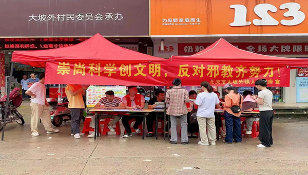 活动中,北流市各个乡镇组织综治中心、司法所、派出所等职能部门,积极开展反邪教宣传教育“进家庭、进学校、进场所、进单位、进农村、进企业”等“六进”活动,通过专题讲座、走访宣传、集中宣传等方式,引导广大群众做珍爱生命、抵制邪教的明白人。