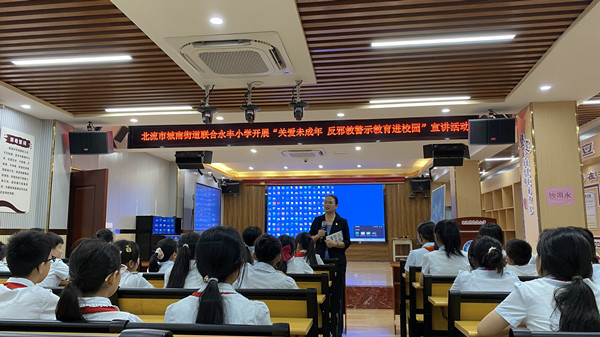 图为城南街道开展的校园反邪教讲座