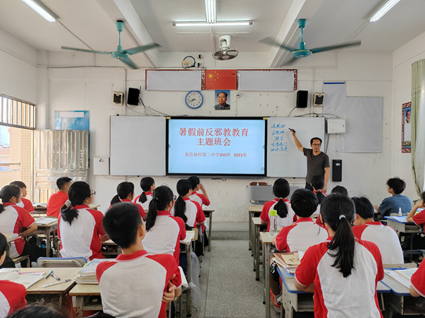 图为容县杨村第二中学开展的反邪教主题班会