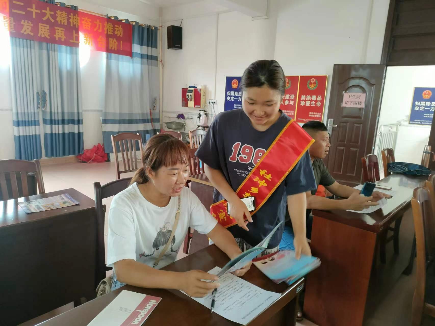 广西反邪教网柳州8月8日讯(通讯员 周晚玲)为助力乡村振兴,严防邪教组织向农村侵蚀蔓延,7月21日,广西柳州市柳城县利用社冲乡开展电子商务进农村电商直播培训班契机,向群众普及反邪教知识。