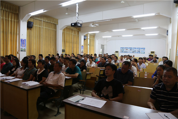 图为凭祥市委政法委蒋副书记为村(社区)两委干部进行反邪教知识培训