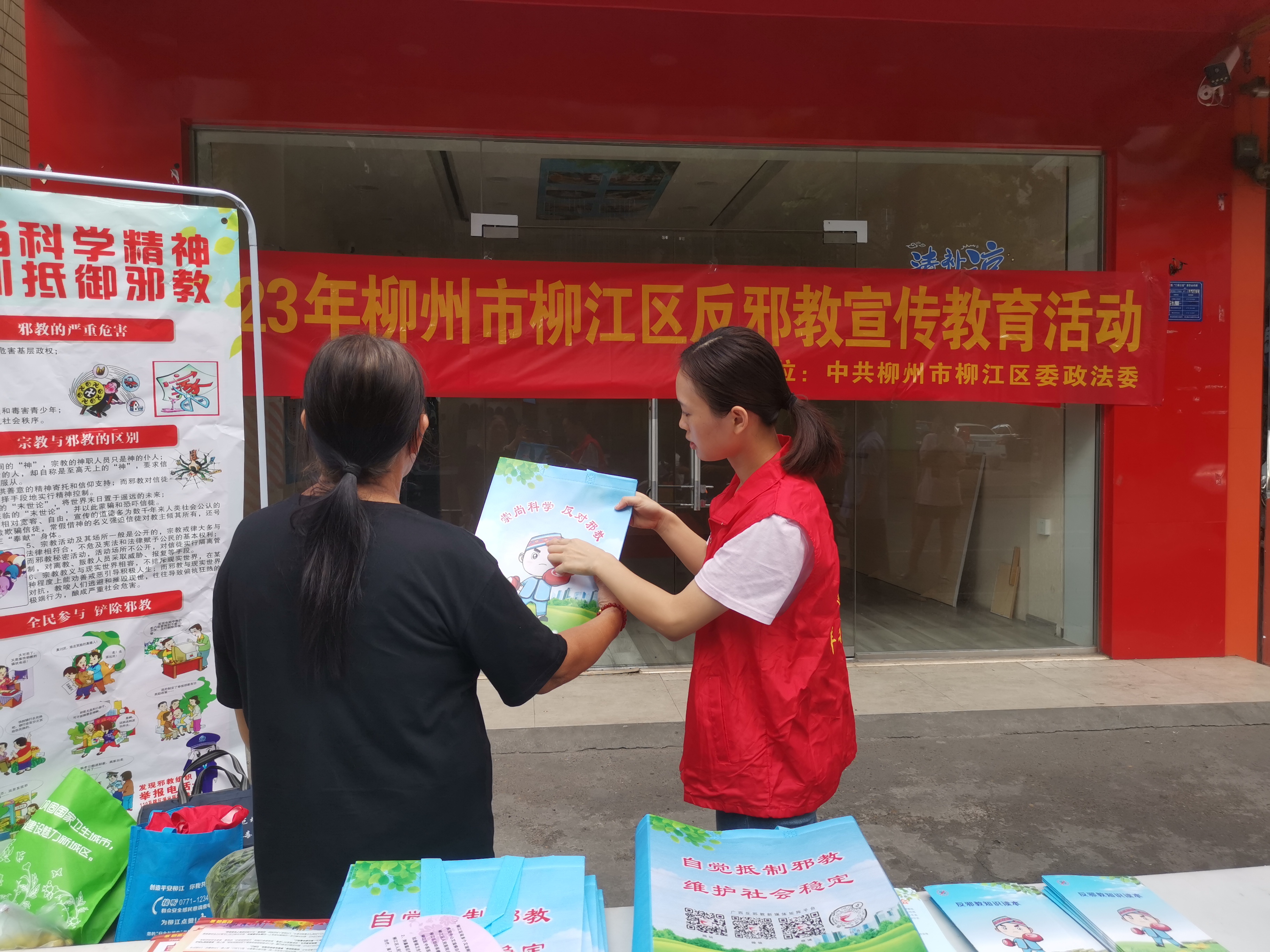 广西反邪教网柳州9月28日讯(通讯员 刘书江 钟柳英)为进一步深化反邪教警示教育宣传工作,加大反邪教宣传覆盖面,全面提升辖区居民对邪教的防范意识和抵制能力,筑牢基层反邪教防线,9月20日下午,广西柳州市柳江区委政法委联合祥和社区开展以“弘扬科学精神,识别抵御邪教”为主题的反邪教宣传活动。
