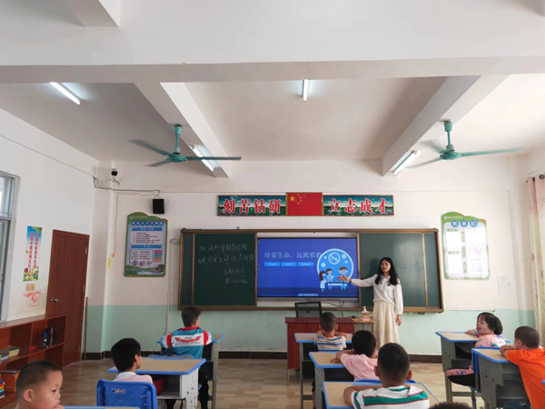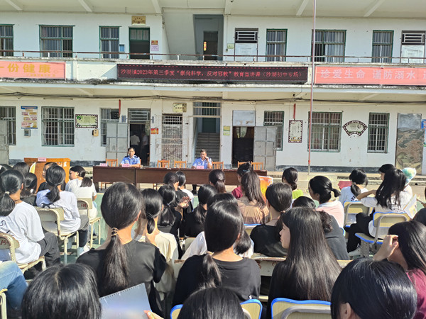 图为沙湖镇在沙湖初中开展的反邪教宣传教育课