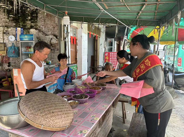 图为平乐镇工作人员在街头巷尾开展反邪教宣传