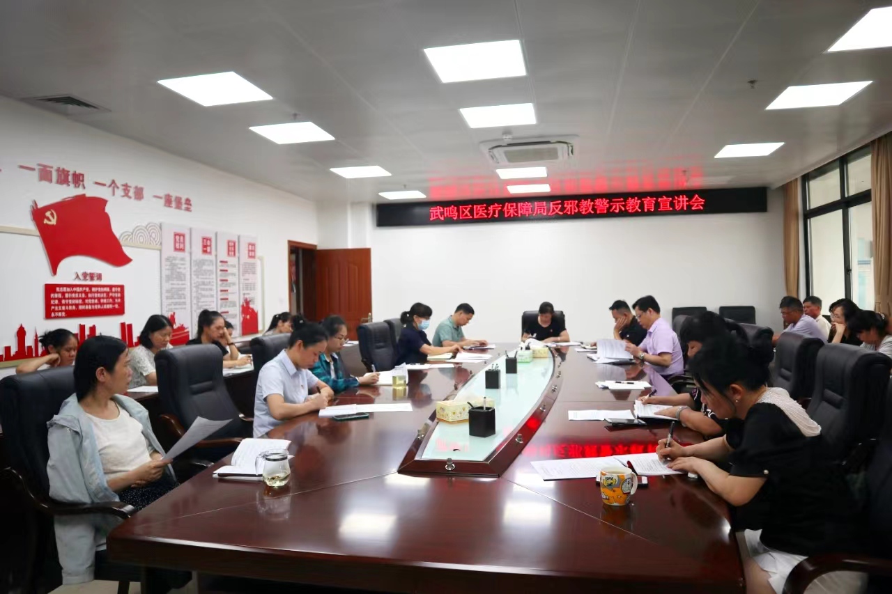武鸣区医保局召开反邪教警示教育宣讲会,干部职工在宣讲会上进一步了解邪教的本质、宗教与邪教的区别、邪教的危害、如何反对和抵制邪教等反邪教知识,学习《中华人民共和国国家安全法》、《宗教事务条例》、《电信条例》、《中共中央宣传部、中共中央组织部、中央网信办<关于规范党员干部网络行为的意见>》等反邪教相关法律法规条文。宣讲人组织干部职工关注“中国反邪教”、“广西反邪”、“南宁反邪”等微信公众号,参与“对邪教说不”、“广西文明家庭拒绝邪教”签名活动。通过开展反邪教警示教育宣讲活动,干部职工深刻认识了邪教的危害,提高了对邪教的辨别能力,增强了法治意识和法治思维。