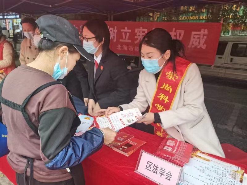 广西反邪教网北海12月20日讯(通讯员 莫艳艳)2023年12月4日是第十个国家宪法日,为进一步推动辖区范围内反邪教宣传活动的不断深入,提高群众辨邪、拒邪、防邪能力,12月4日,广西壮族自治区北海市铁山港区委政法委、法学会借助宪法宣传日在南康集市前开展反邪教宣传活动。