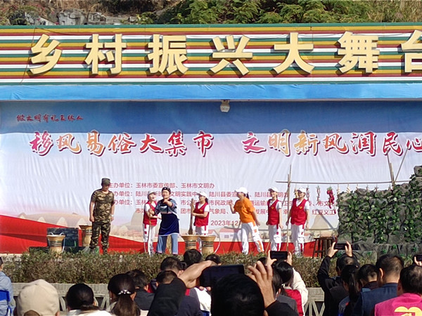 2023年12月28日,玉林市“移风易俗大集市文明新风润民心”主题活动在玉林市陆川县珊罗镇田龙村隆重举办。结合此次机会,玉林市委政法委联合市委宣传部、市文明办、陆川县委政法委、陆川县反邪教协会等单位和团体,开展玉林市“移风易俗大集市 文明新风润民心”主题实践暨反邪教网宣直播活动。此次活动是一场集文化传承、政策宣传、科普知识、农产品展销于一体的集市盛会,活动通过向基层群众展示了陆川县乡村振兴、移风易俗、文明创城等工作成效,进而推动移风易俗成为一种新风尚,使文明之风在基层点面开花蔚然成风,汇聚起玉林市陆川县经济社会高质量发展的磅礴力量。