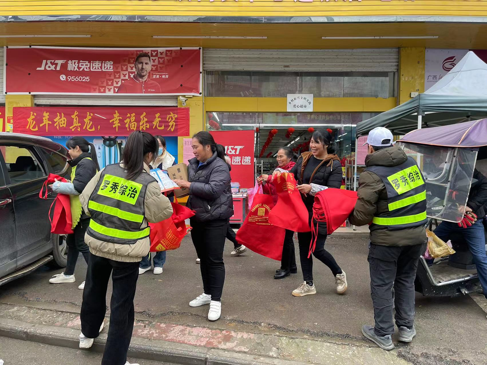 广西反邪教网来宾2月7日讯(通讯员 左猛 罗颖慧 谭秀波 胡裕洁 覃敏前 韦立民)春节将近,外出务工人员陆续返乡,与家人团结共贺龙年新春。1月26日至29日,来宾市象州县以迎新年为契机,组织各乡镇和各部门开展迎新春送“平安”集中宣传活动,宣传主题包括反邪教、反电诈、禁毒等内容,集中宣传活动为春节期间营造祥和喜庆的节日氛围。