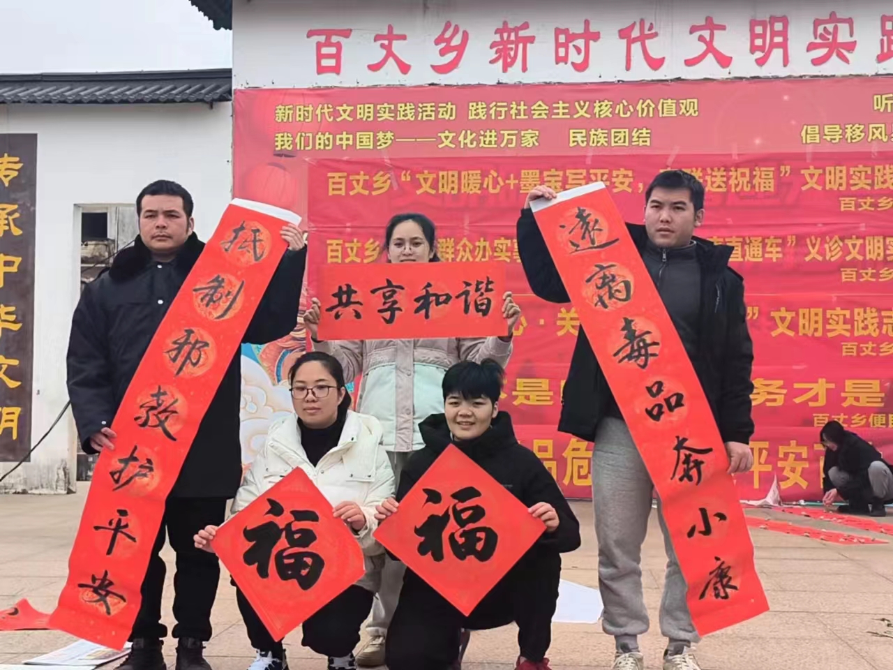 “我也要把这幅‘抵制邪教护平安,远离毒品奔小康’春联粘贴到我村的文化楼大门上,增强广大人民群众自觉抵御邪教和毒品侵蚀的意识,力争新的一年我村能评上无邪教村、无毒村。”百丈村委驻村第一书记周如军说。