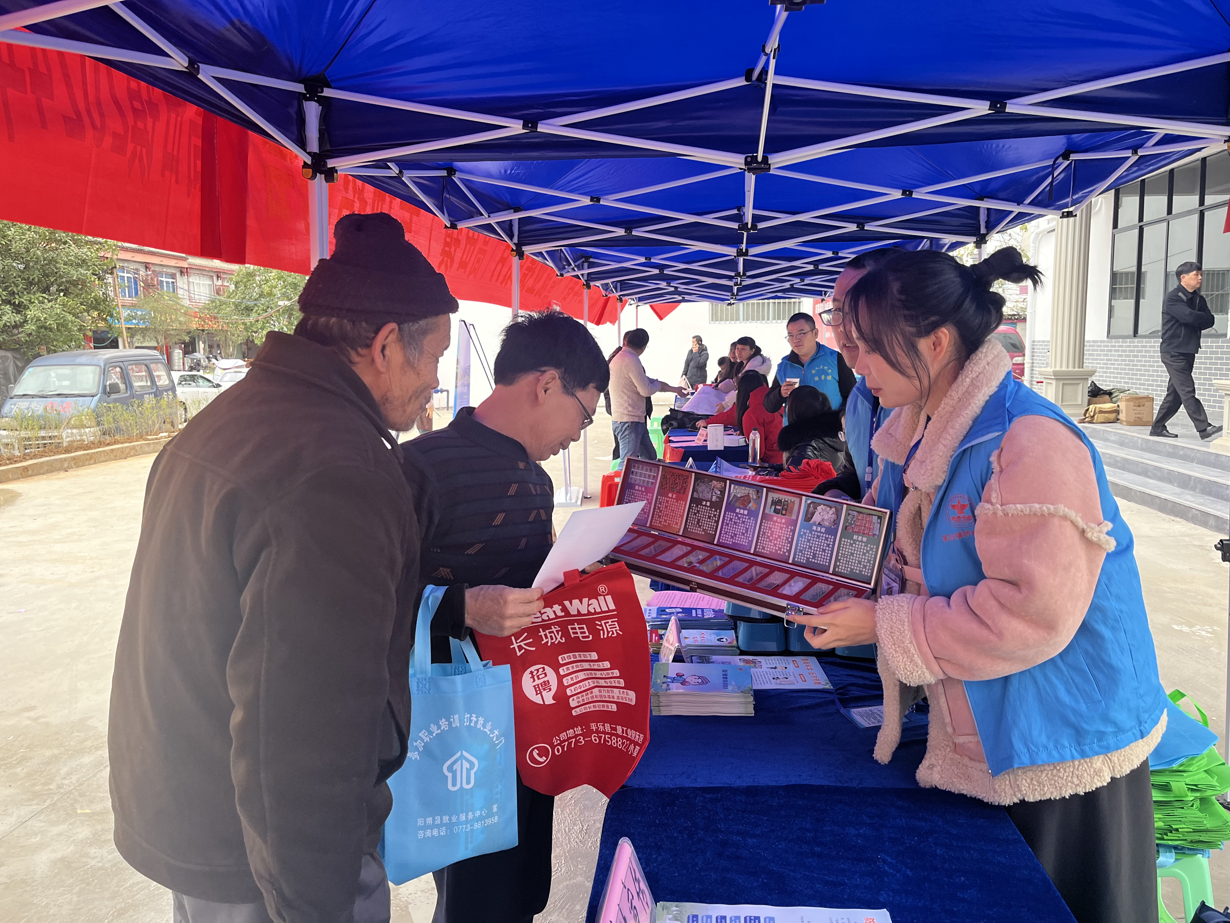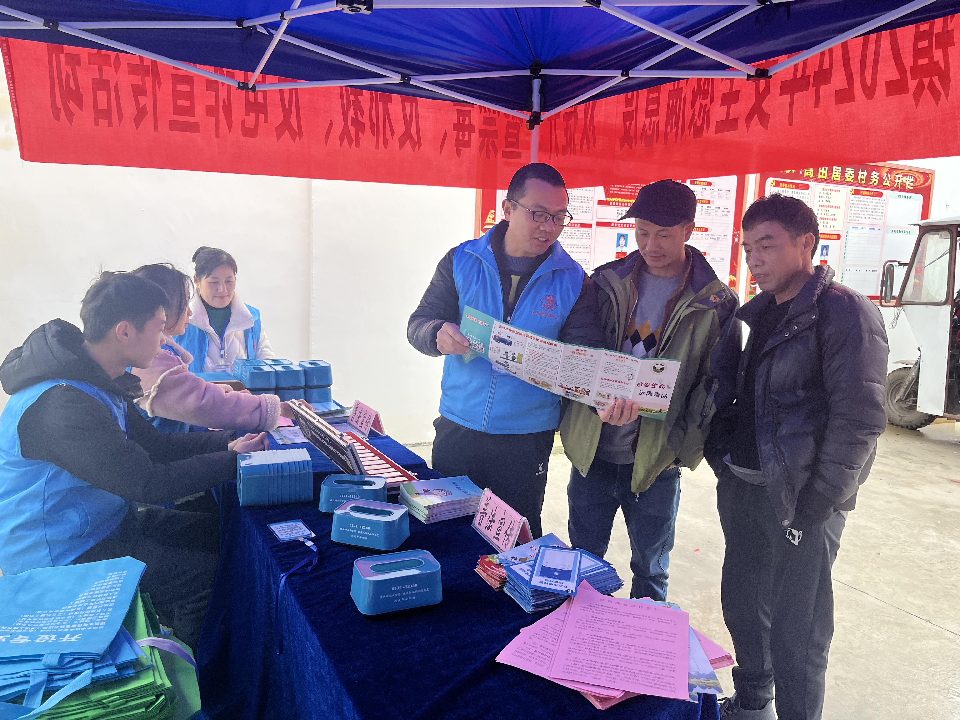 广西反邪教网桂林2月7日讯(通讯员 莫秦萍)春风送暖入新年,聚贤纳才开新篇,法治礼包添年味。2月2日,阳朔县高田镇借助“阳朔县2024年春风行动暨就业援助月(高田镇)专场招聘会”的契机及圩日人流量大的优势,组织党员干部、人大代表、法学会会员、普法志愿者、禁毒社工在高田镇新商会大楼前开展禁毒反邪法治宣传活动,为广大务工人员送上求职“第一课”。