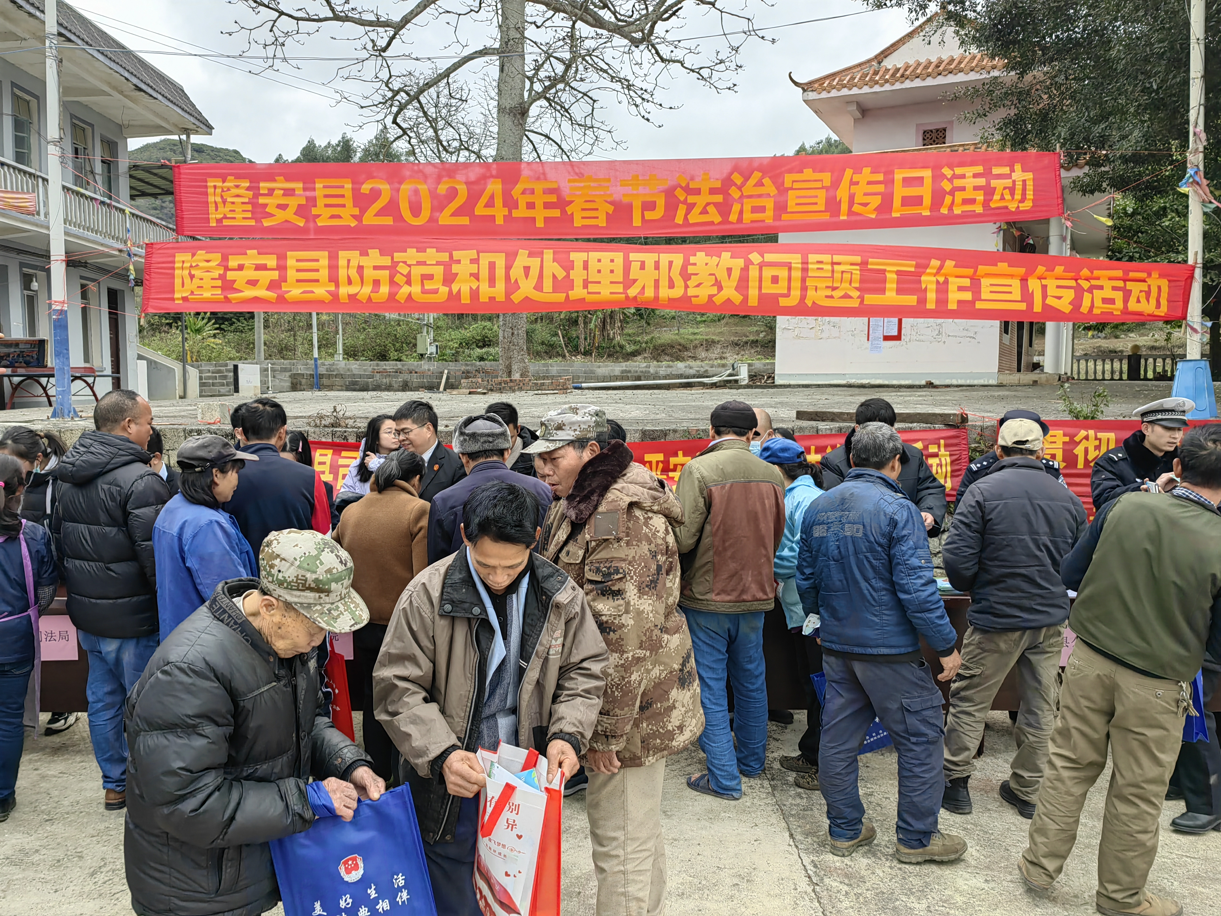 各乡镇综治干部、辖区民警、网格员组建宣传队伍,趁着春节期间学生放假、返乡人员增多的时机,深入街圩、农贸市场、文体广场等人员密集场所,向群众派发反邪教宣传资料,详细讲解邪教组织的特点和危害,提醒群众外出活动时谨防各种邪教组织骗人的伎俩,平平安安过新年。