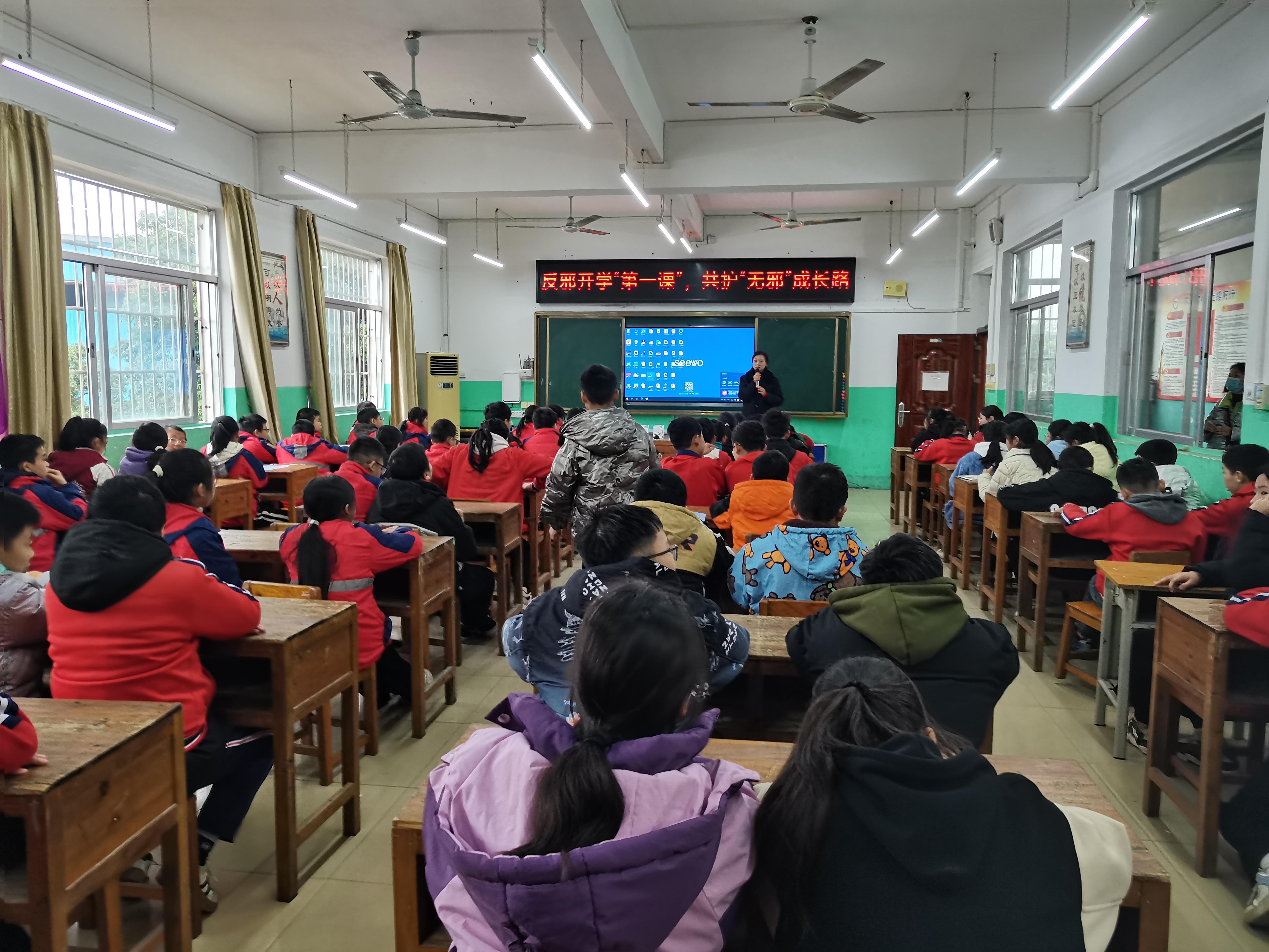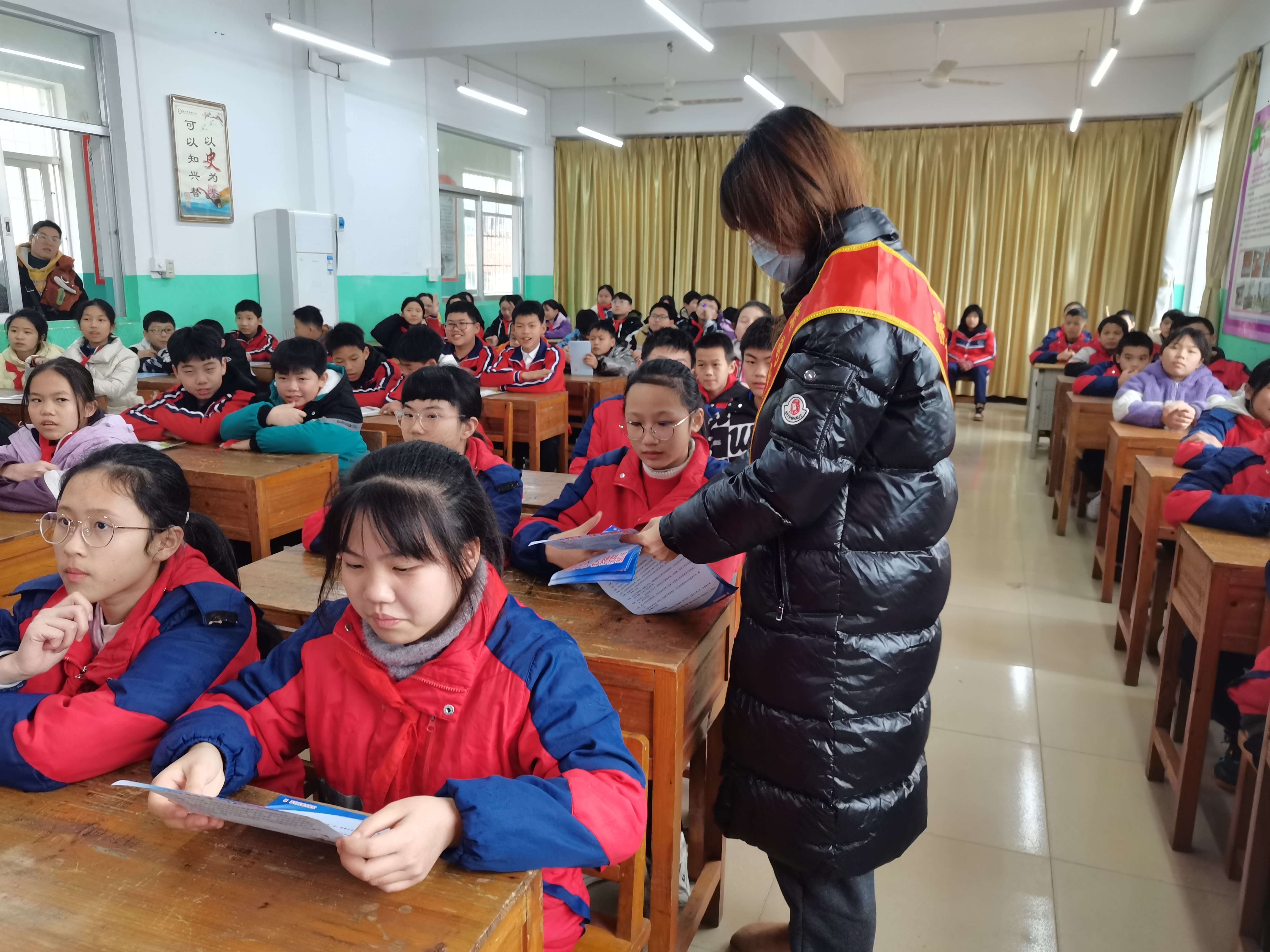 广西反邪教网梧州3月4日讯(通讯员 叶婷 黄泳娟)为进一步增强广大师生识邪、辨邪、防邪、拒邪的能力,营造科学文明、平安和谐的校园氛围,2月26日,梧州市万秀区城北街道、红楼派出所、城北司法所、钱鉴社区的反邪教志愿者们到钱鉴小学开展主题为“上好开学‘第一课’ 共护‘无邪’成长路”的反邪教宣传进校园活动。