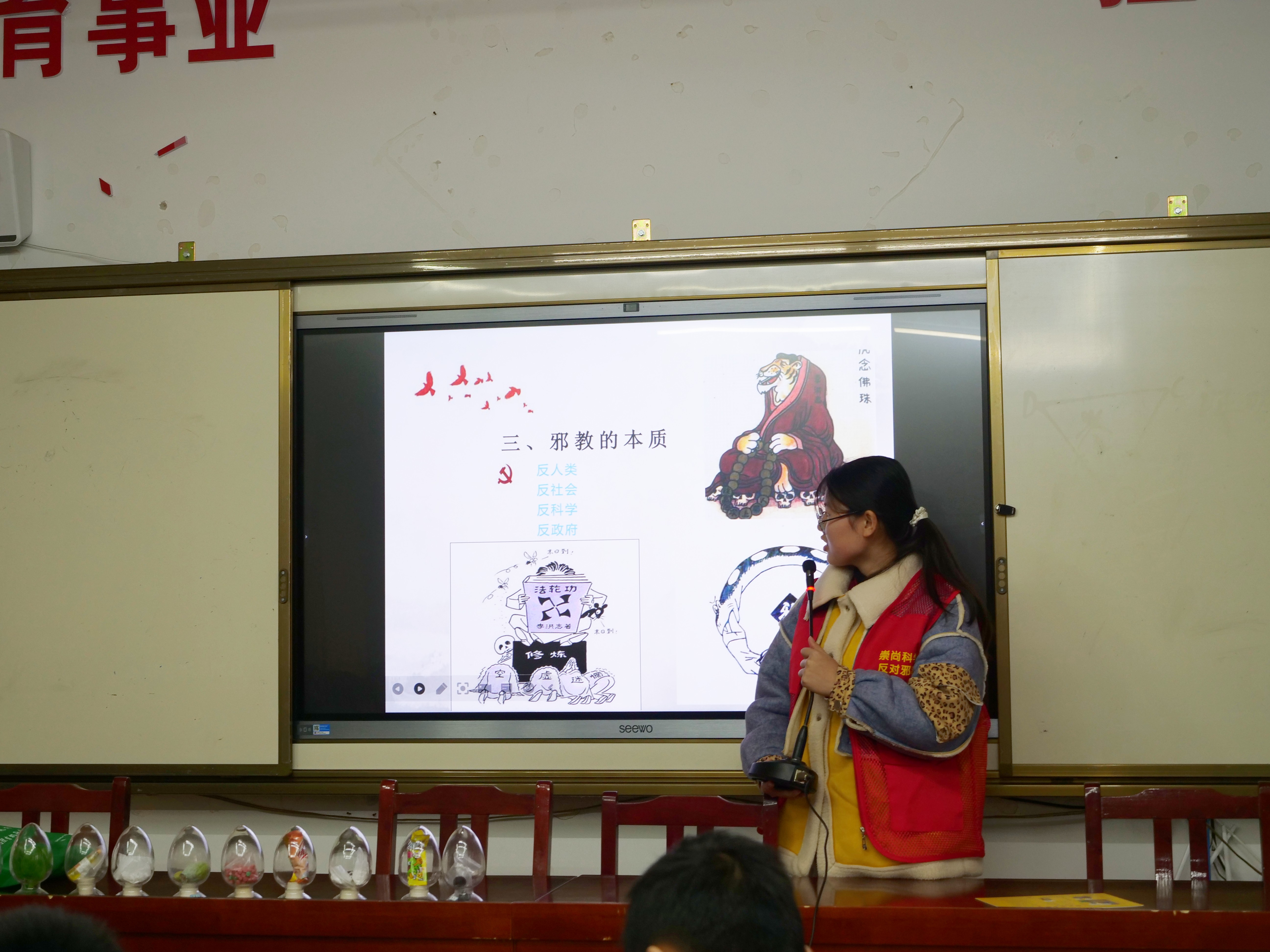 课堂上,工作人员结合典型案例,深入浅出地向学生们讲解反邪教知识,包括什么是邪教、邪教的特点及危害、如何抵制邪教、遇到邪教活动该怎么办等方面。通过这种方式,让学生们认识到邪教的本质以及危害,教育学生信科学、讲科学,并提醒他们如发现邪教非法活动时,要及时报警,以实际行动维护社会和谐稳定。