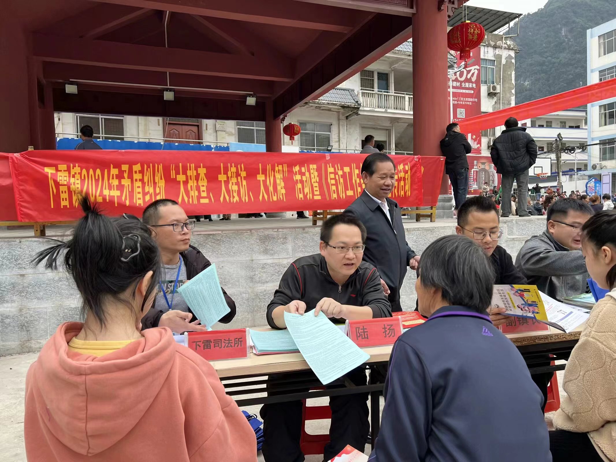 广西反邪教网崇左3月21日讯(通讯员 赵胜武 冯永盛)为践行新时代“枫桥经验”,推进矛盾纠纷预防化解,近日,崇左市大新县下雷镇组织由包村领导为组长、包村工作队、驻村工作队等为成员的 14 个工作小组,深入到各村(社区)设立接访点,开展矛盾纠纷“大排查、大接访、大化解”暨反邪教宣传进乡村活动。