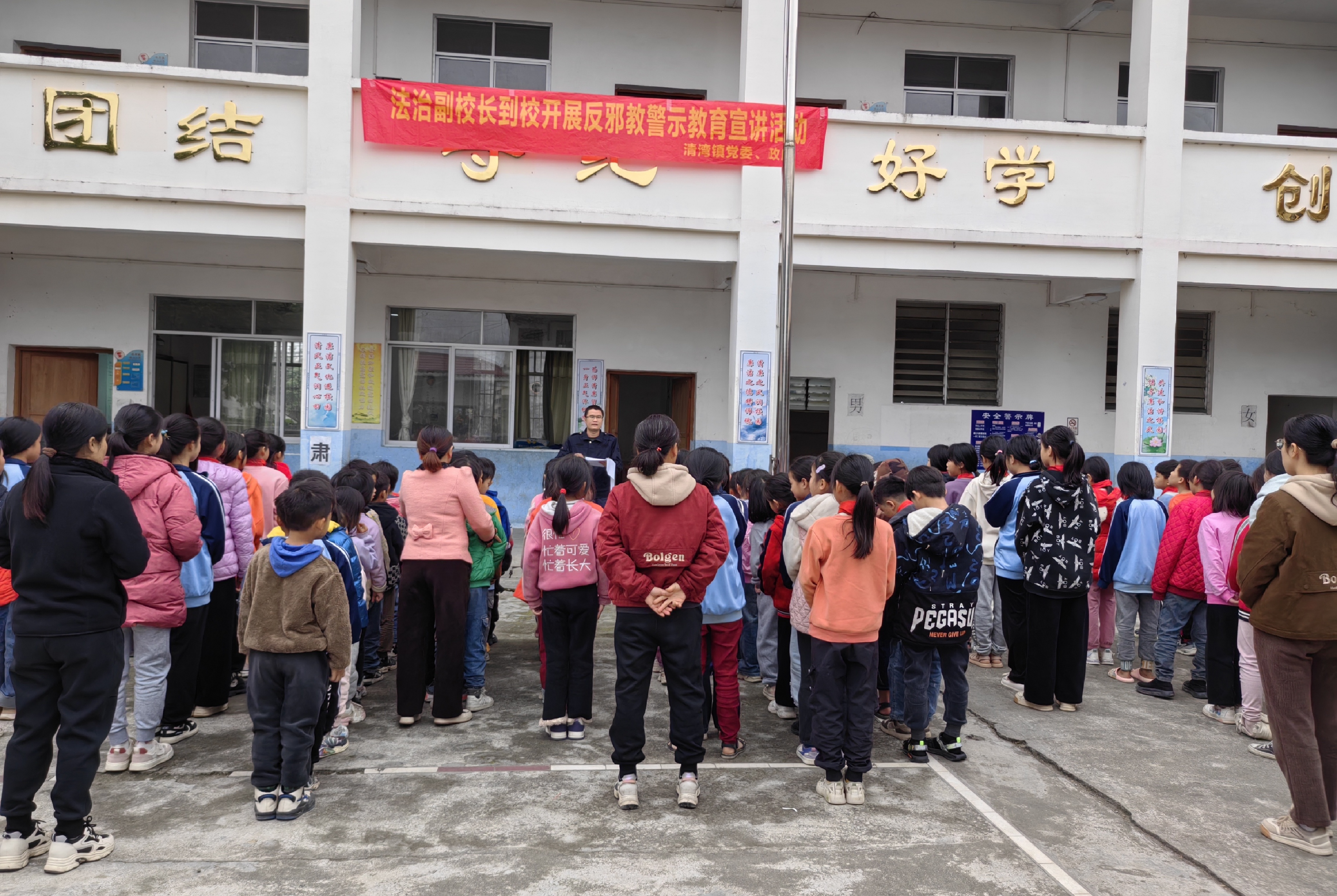 广西反邪教网玉林3月13日讯(通讯员 廖海梅 姚露明)3月7日,玉林北流市清湾镇组织3名法治副校长到辖区内的中龙小学、旺垌小学、侯山小学、香田小学等学校开展反邪教宣传活动,以“讲好第一课”为主题,增强在校学生防范邪教的意识,为营造浓厚的“无邪未来”校园氛围。