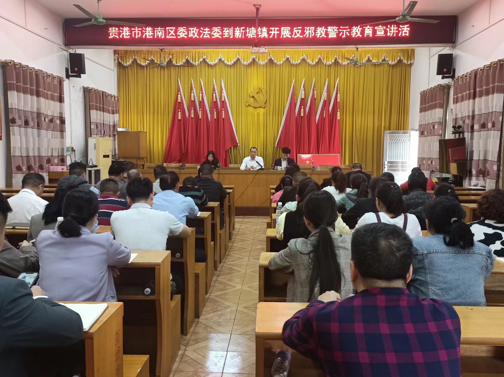 广西反邪教网贵港3月19日讯(通讯员 朱泓琏)为进一步筑牢反邪教思想防线,深化反邪教警示教育宣传成效,切实提高干部群众的识邪、辨邪、防邪、拒邪能力,3月18日,贵港市港南区委政法委到新塘镇开展反邪教警示教育宣讲活动。