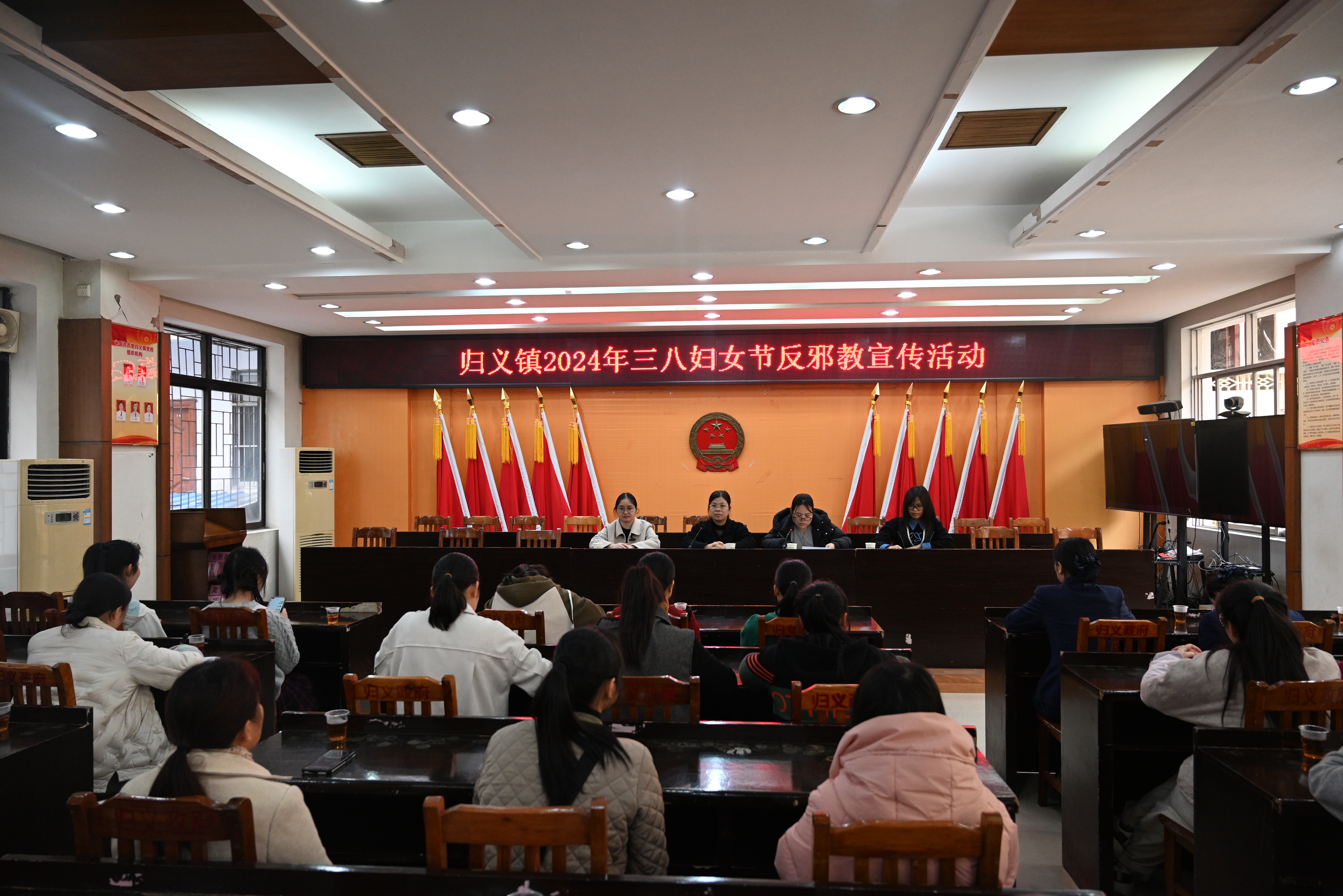 次日,归义镇召开庆祝“三八”国际妇女节座谈会,会上妇联主席通过剖析典型案例向全体女干部职工讲解了邪教的主要特征和骗人手段,并揭露了邪教反社会、反人类、反科学的本质,普及了反邪教法治知识,使得全体女干部职工对邪教的危害性有了更深入的了解。同时,向妇女同胞们普及当遇到邪教活动时该如何保护自己、如何应对等反邪教的基本知识。