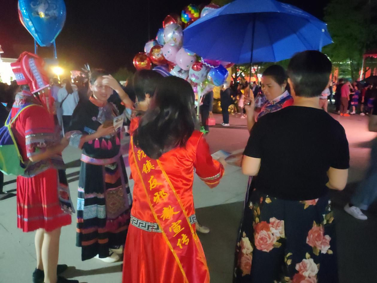 篝火晚会上,各族同胞手拉手,齐舞蹈,用真情和热情礼赞“三月三”,将反邪教元素融入传统节日活动,将反邪教内容编撰成山歌,共同唱响反邪教进步曲。本次活动邀请县融媒体开启网络直播,直播间观看人数超40万人次。