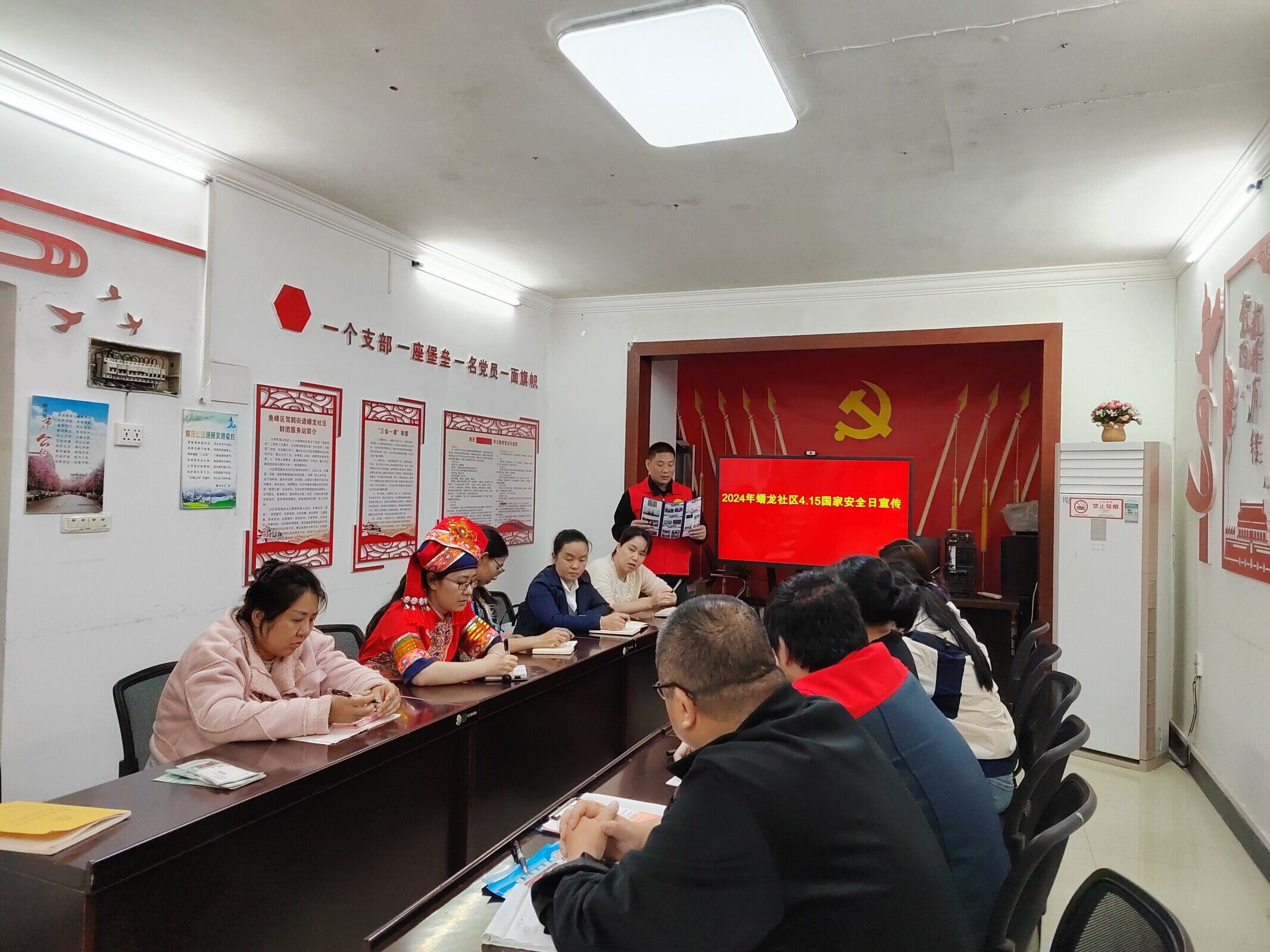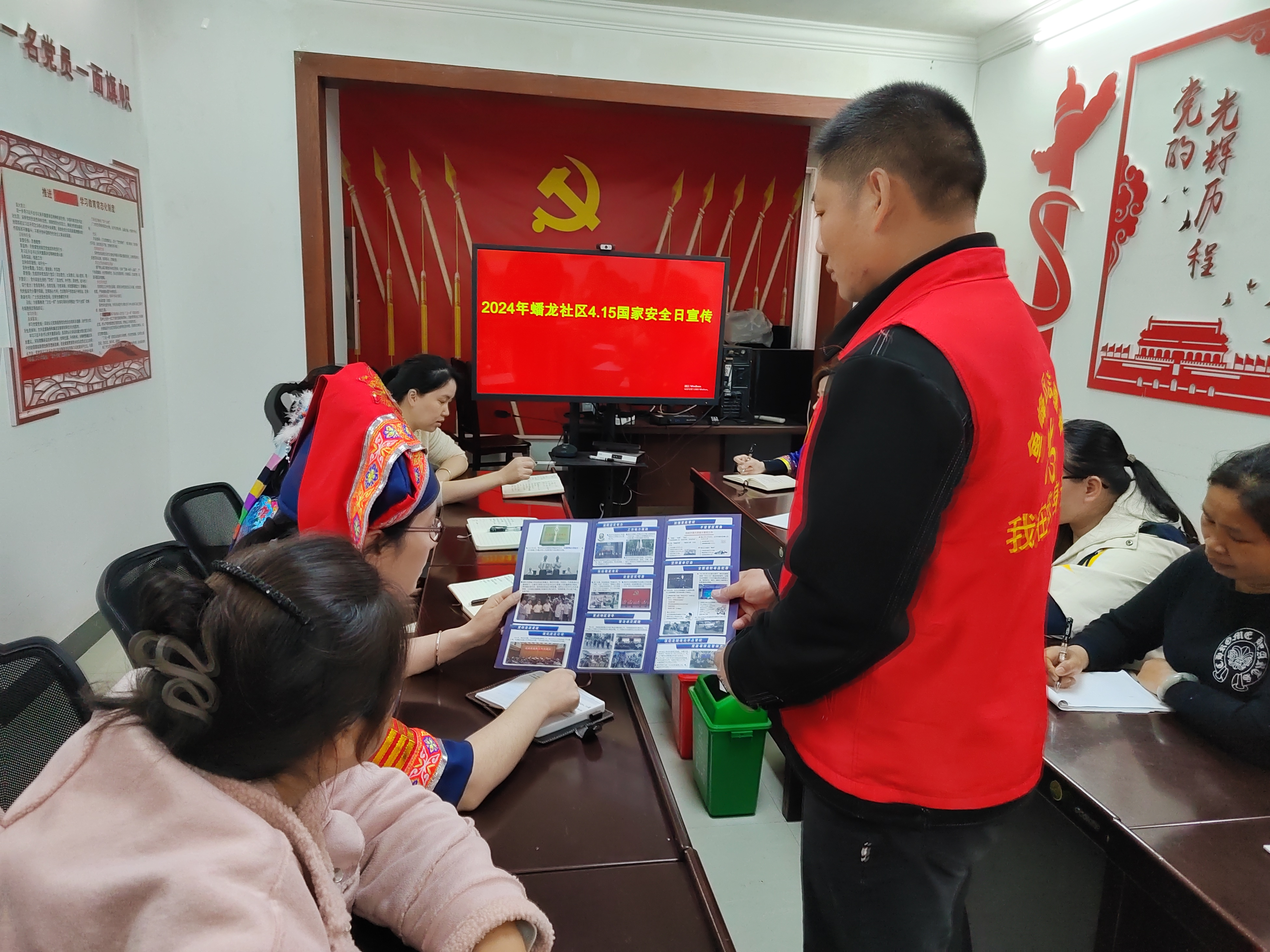 广西反邪教网柳州4月12日讯(通讯员 罗金明)今年4月15日是第5个全民国家安全教育日,为进一步增强社区工作人员的国家安全法治意识、风险意识、保密意识和反邪教、禁毒相关知识,筑牢思想防线,柳州市鱼峰区蟠龙社区围绕国家安全教育日活动主题,组织全体职工开展 “4・15”全民国家安全教育日暨反邪教、禁毒知识专题学习会。