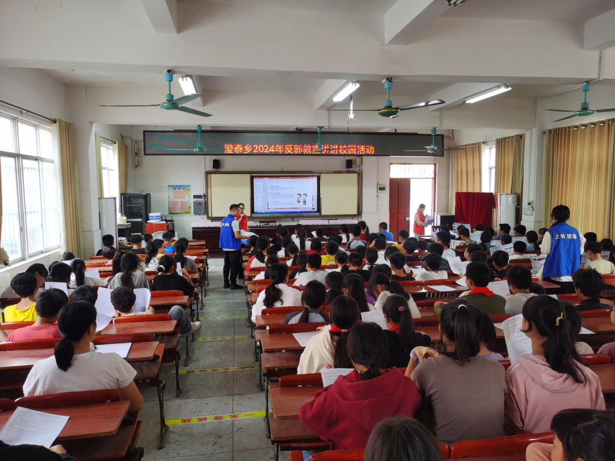 广西反邪教网南宁4月22日讯(通讯员 卢佩佩)4月15日是全民国家安全教育日,为提升中小学生国家安全意识,提高防范和抵御安全风险能力,深刻认识邪教组织对国家安全构成的巨大威胁,南宁市上林县澄泰乡综治中心联合司法所、禁毒办来到澄泰乡中心校,开展反邪教宣讲活动,增强中小学生识邪、防邪、拒邪意识,筑牢国家安全屏障。