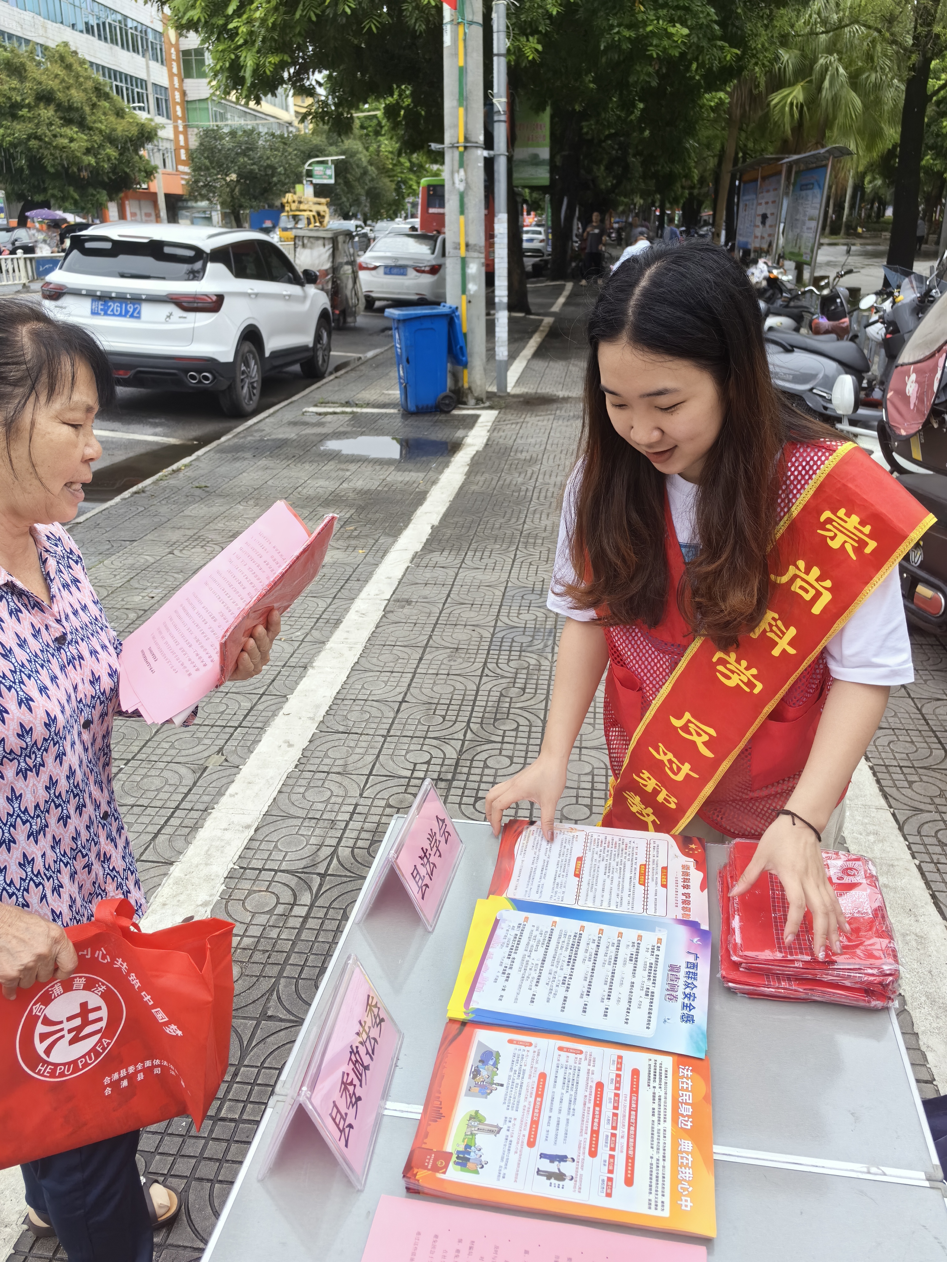 广西反邪教网北海5月2日讯(通讯员 吕桂宇)为进一步巩固加深广大群众对反邪教知识的认知和了解,提高反邪教斗争的积极性和主动性,4月22日,在“世界法律日”当天,北海市合浦县委政法委、县法学会在还珠广场开展了一场以“中华民族一家亲”为主题的反邪教警示教育宣传活动。