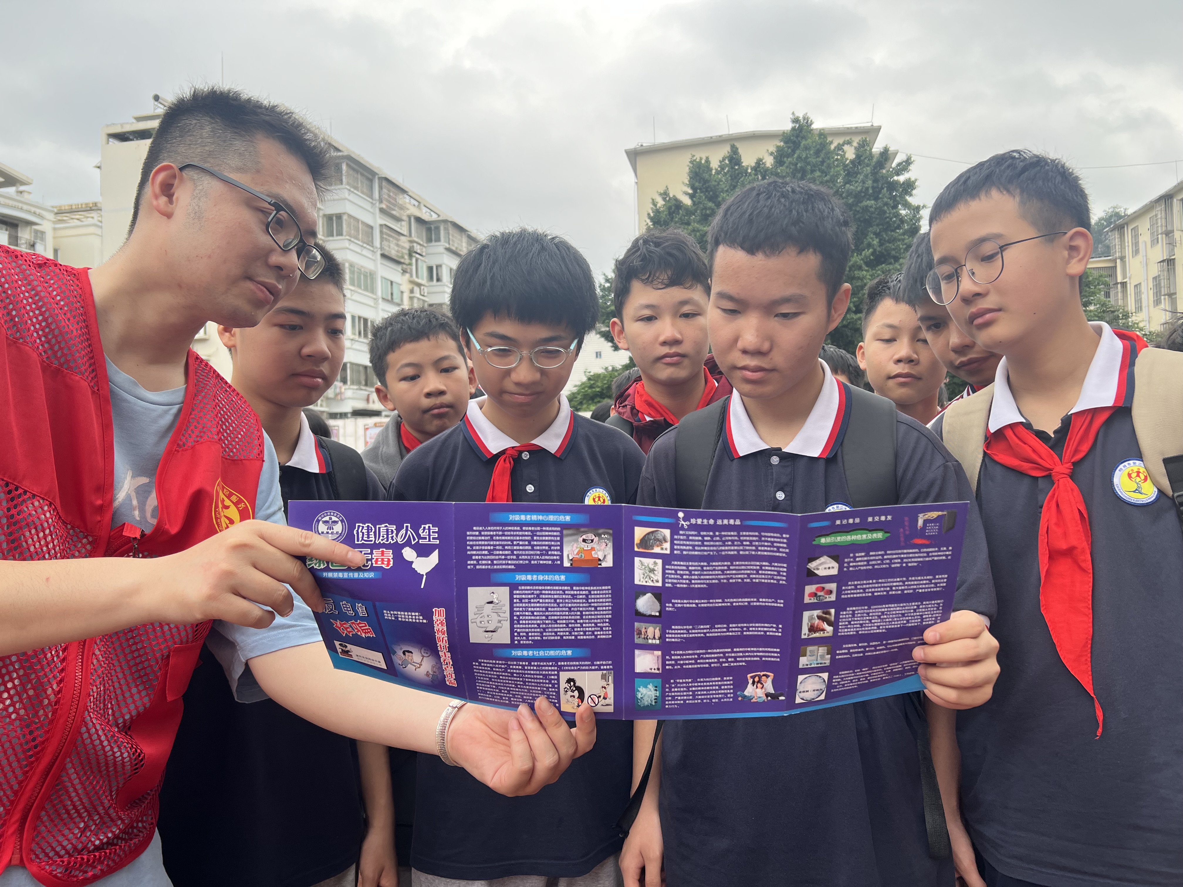 在开展防灾减灾宣传活动的同时,志愿者以此为契机,向同学们宣传识毒识邪、防毒防邪、拒毒反邪的相关知识和法律法规。介绍毒品的种类,详细讲解毒品和邪教的危害性,提醒同学们不要进入治安复杂的场所,如发现有吸毒、宣传邪教人员,要自觉抵制并及时与公安机关联系。