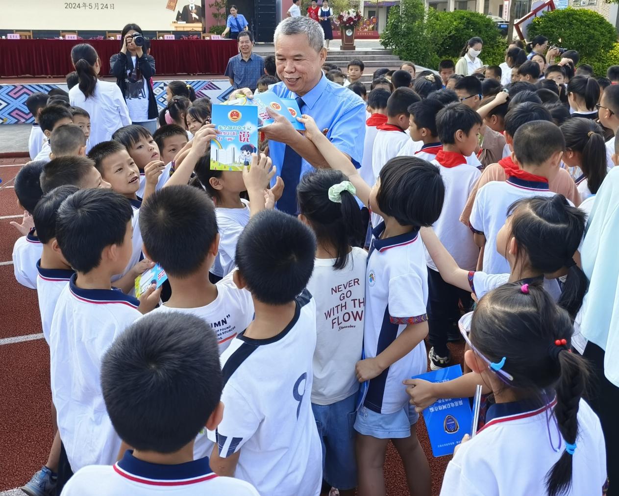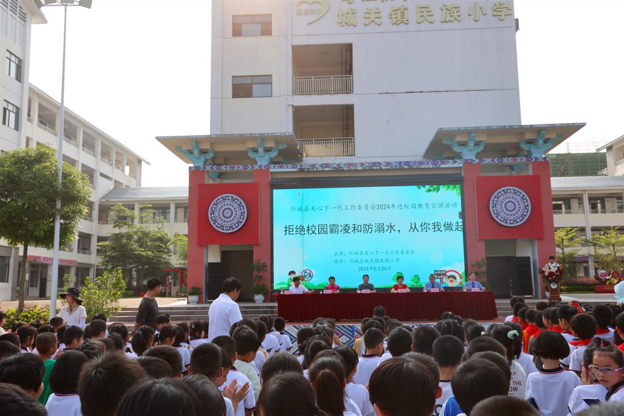 广西反邪教网来宾市5月28日讯(通讯员 秦立惠)为进一步增强未成年人法治意识,增强学生安全防范意识和能力,预防学生欺凌、校园暴力、邪教渗透等案件及事故发生,推进平安校园、法治校园建设,5月24日,来宾市忻城县检察院联合县关心下一代工作委员会,组织开展法治、防溺水、预防校园霸凌、反邪教等平安法治宣传进校园活动,为忻城县民族小学1600余名师生带来一堂生动的平安法治宣讲课,共同筑牢校园安全防线。