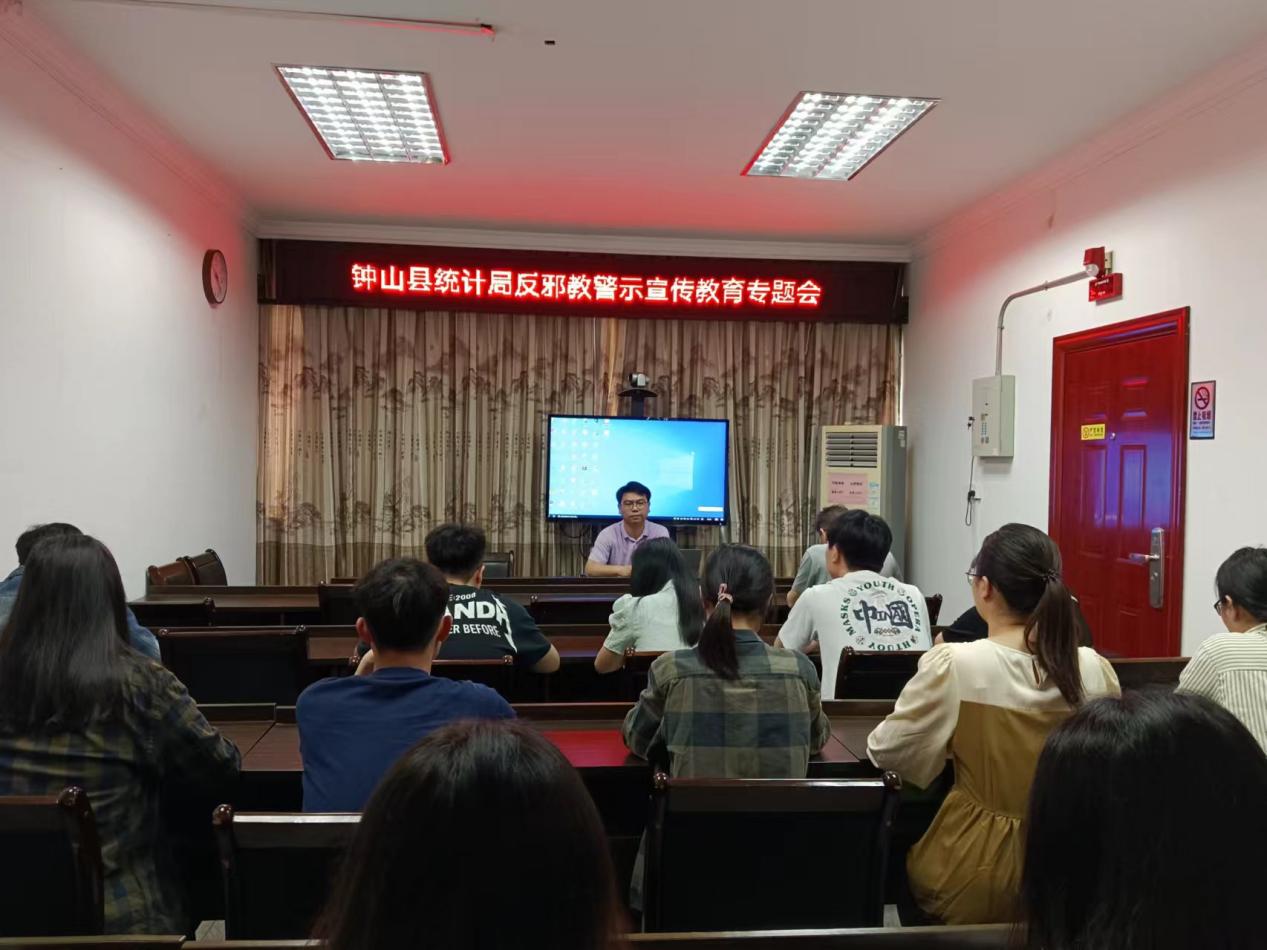 5月21日,钟山县统计局组织全体干部职工召开反邪教警示教育宣传专题会,会上,钟山县统计局党组成员黄玉钦讲解了邪教的本质、现实危害及如何防范抵制邪教等知识。通过此次活动,增强了统计局干部反邪教意识和能力。参会人员纷纷表示,将自觉担起反邪教宣传教育责任,坚持从我做起、从身边人做起,带头反对邪教,从源头上预防和遏制邪教滋生蔓延,努力营造积极向上、健康和谐的工作和生活环境。