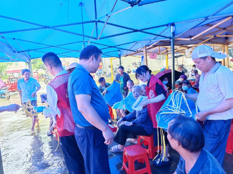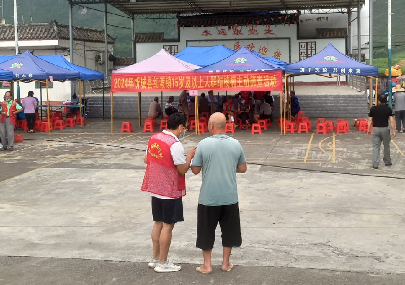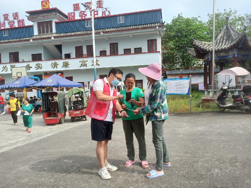 图为西江村网格员在筛查活动现场开展反邪教宣传