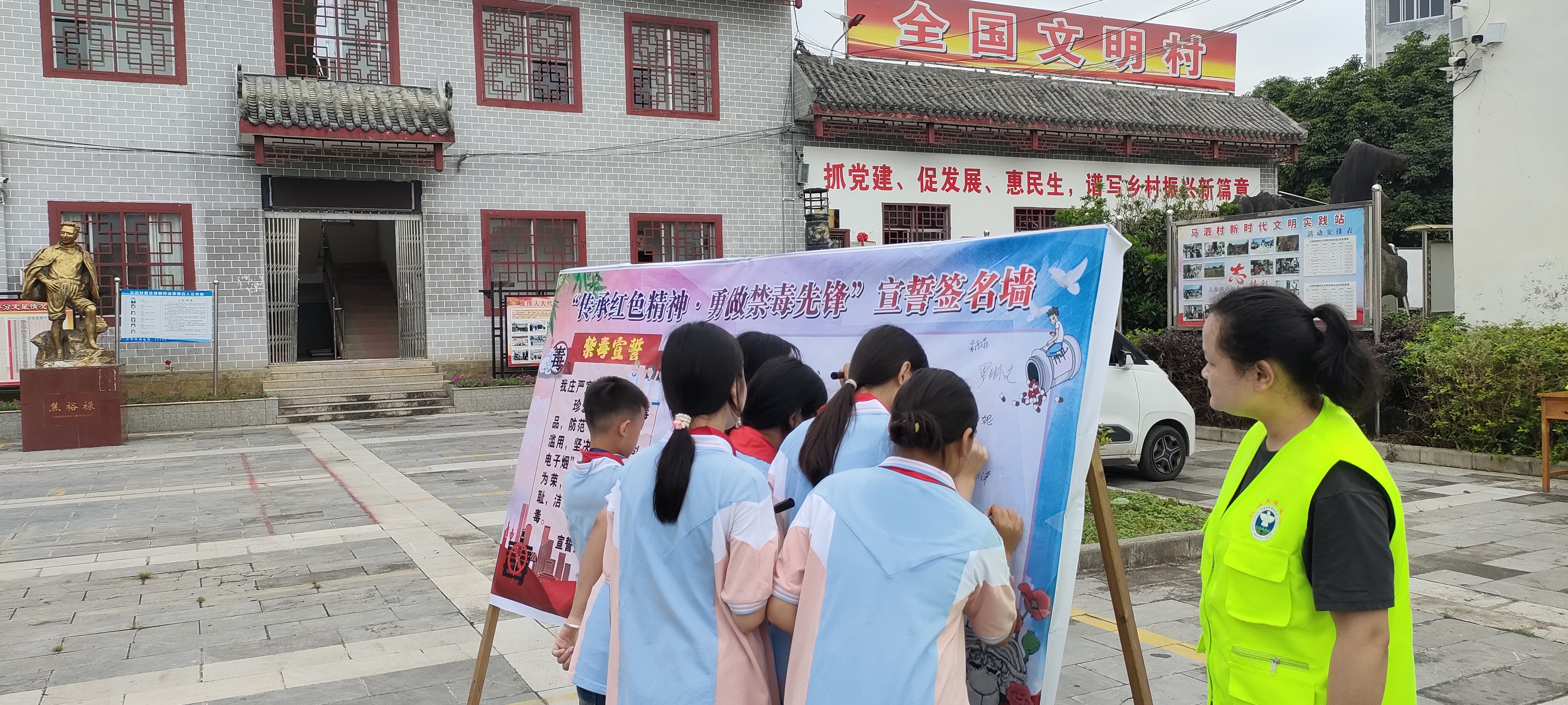 活动中,工作人员通过设立毒品展示台、发放宣传资料、现场讲解等形式,近距离向同学们普及禁毒知识,引导他们如何有效预防和抵制毒品的侵害。此外,工作人员还深入讲解了邪教的主要特征、渗透手段等内容,并结合具体实例揭示了毒品与邪教对个人、家庭乃至整个社会的巨大危害,以此警示同学们要严格遵守法律法规,树立健康、积极的人生观和价值观。同学们积极参与,庄严宣誓,纷纷在写有“传承红色精神 勇做禁毒先锋”的展板上庄重签名,表达了自己坚定的决心。