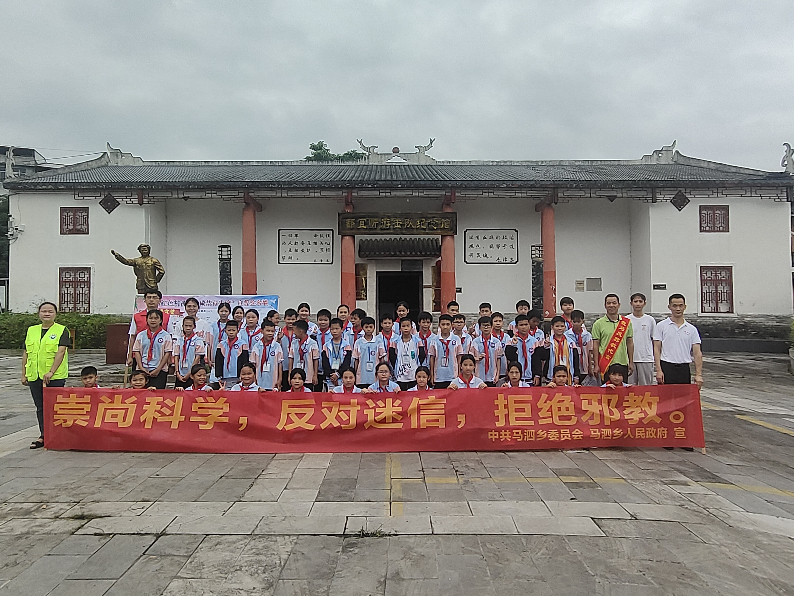 广西反邪教网贺州6月3日讯(通讯员 樊仕维)在“六一”儿童节来临之际,为切实抓好未成年人思想教育,构筑校园拒毒防邪坚实堡垒,大力弘扬爱国主义精神,5月29日,来宾市忻城县马泗乡组织中心小学五十余名少先队员到马泗村红色广场开展“快乐童年 健康人生”主题队日活动。