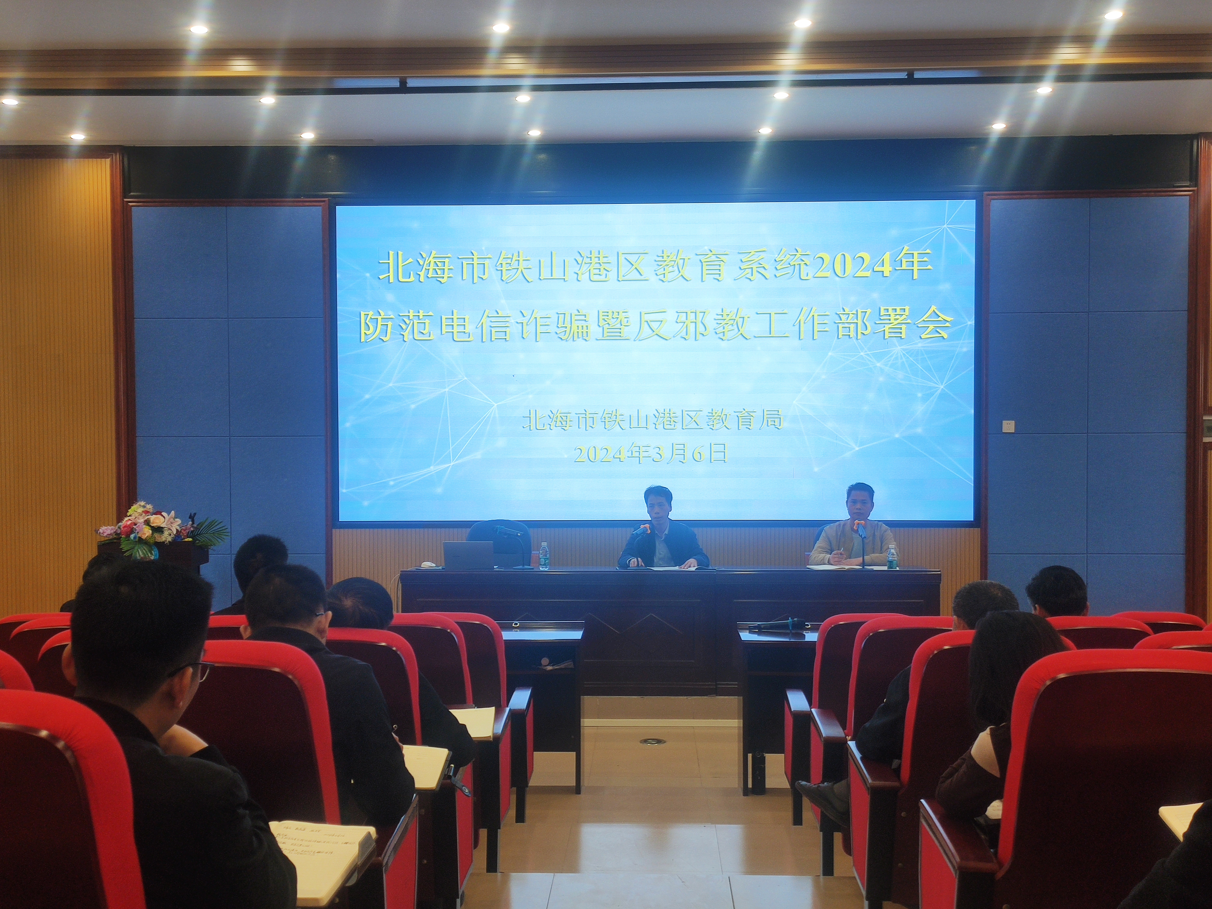 3月6日,北海市铁山港区教育局召集全区中小学、幼儿园主要负责人召开北海市铁山港区教育系统2024年防范电信诈骗暨反邪教工作部署会,研究部署3月份教育系统反邪教教育工作,确保每一所学校真正重视落实做好该项工作。